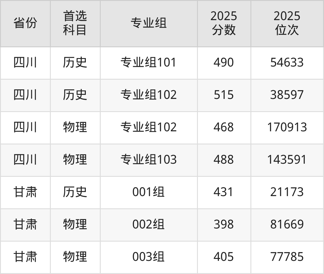 因为大部分地区目前只公布了院校(专业组)分数线,为了方便2026年考生参考,本文就整理出西安培华学院在全国各省不同科类的最低分: