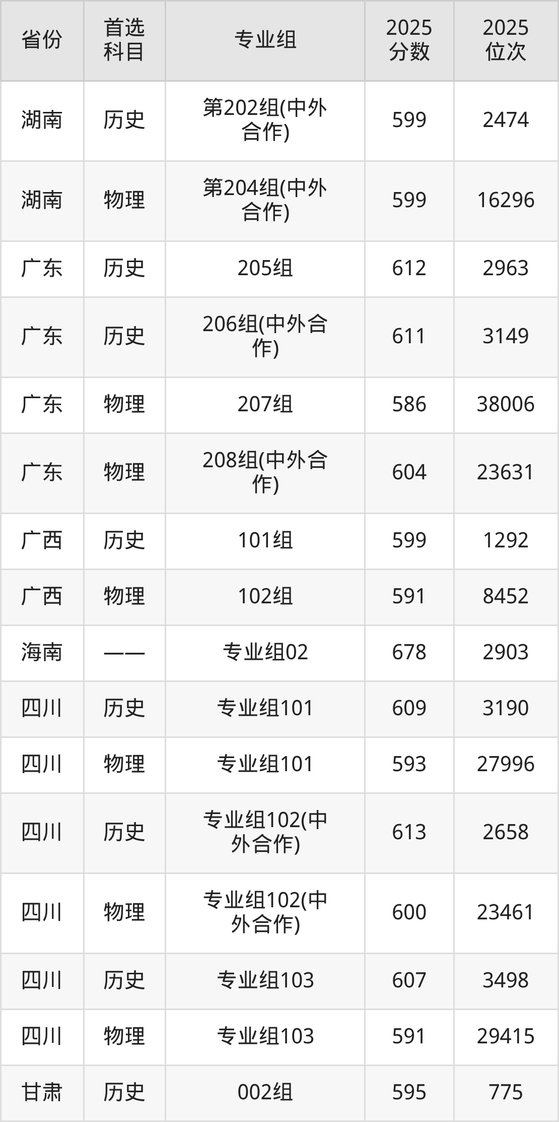 因为大部分地区目前只公布了院校(专业组)分数线,为了方便2026年考生参考,本文就整理出西南政法大学在全国各省不同科类的最低分: