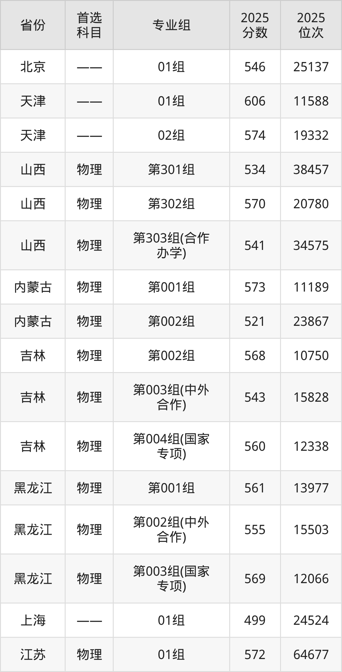 因为大部分地区目前只公布了院校(专业组)分数线,为了方便2026年考生参考,本文就整理出沈阳航空航天大学在全国各省不同科类的最低分:
