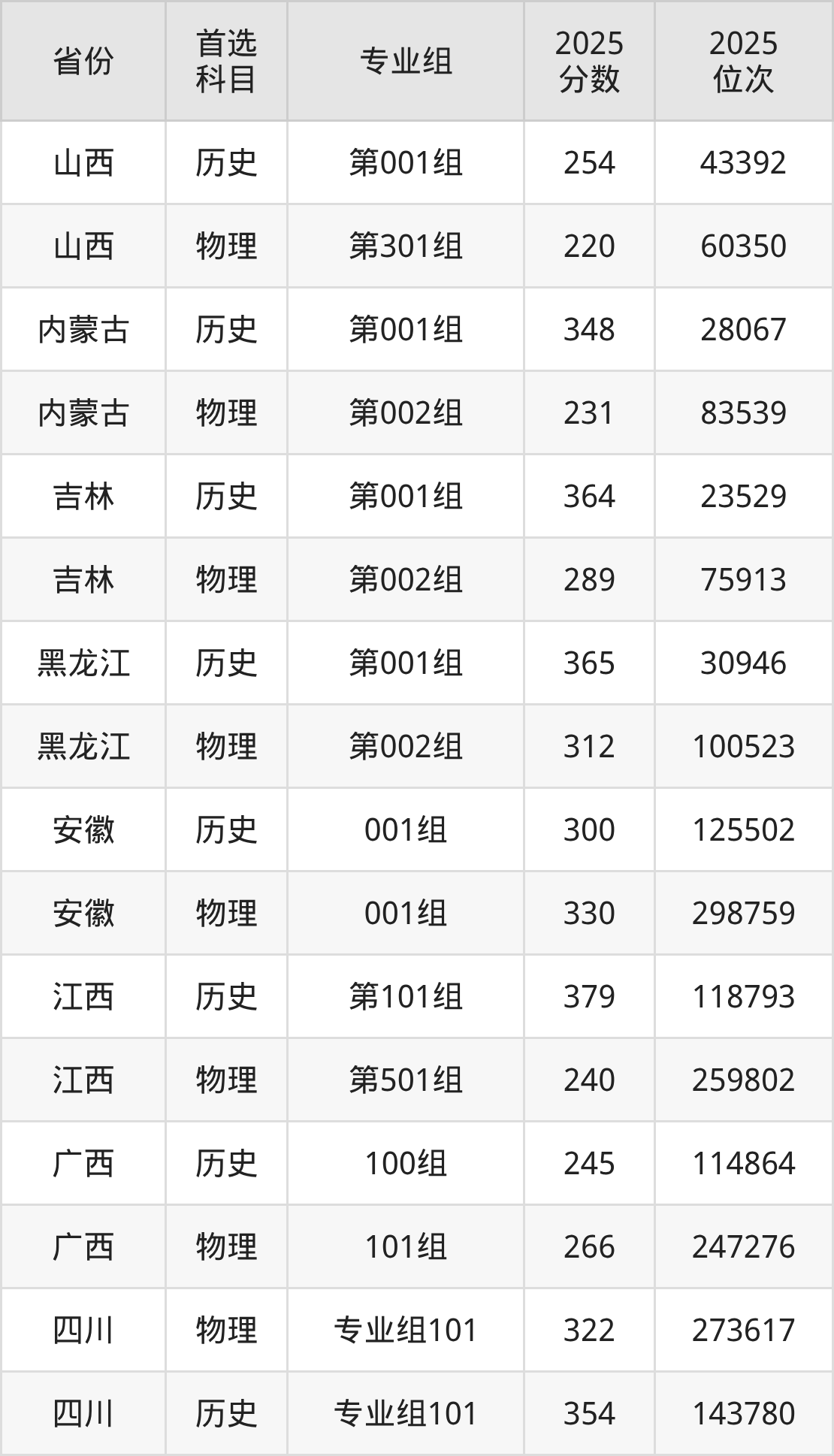 因为大部分地区目前只公布了院校(专业组)分数线,为了方便2026年考生参考,本文就整理出辽宁生态工程职业学院在全国各省不同科类的最低分: