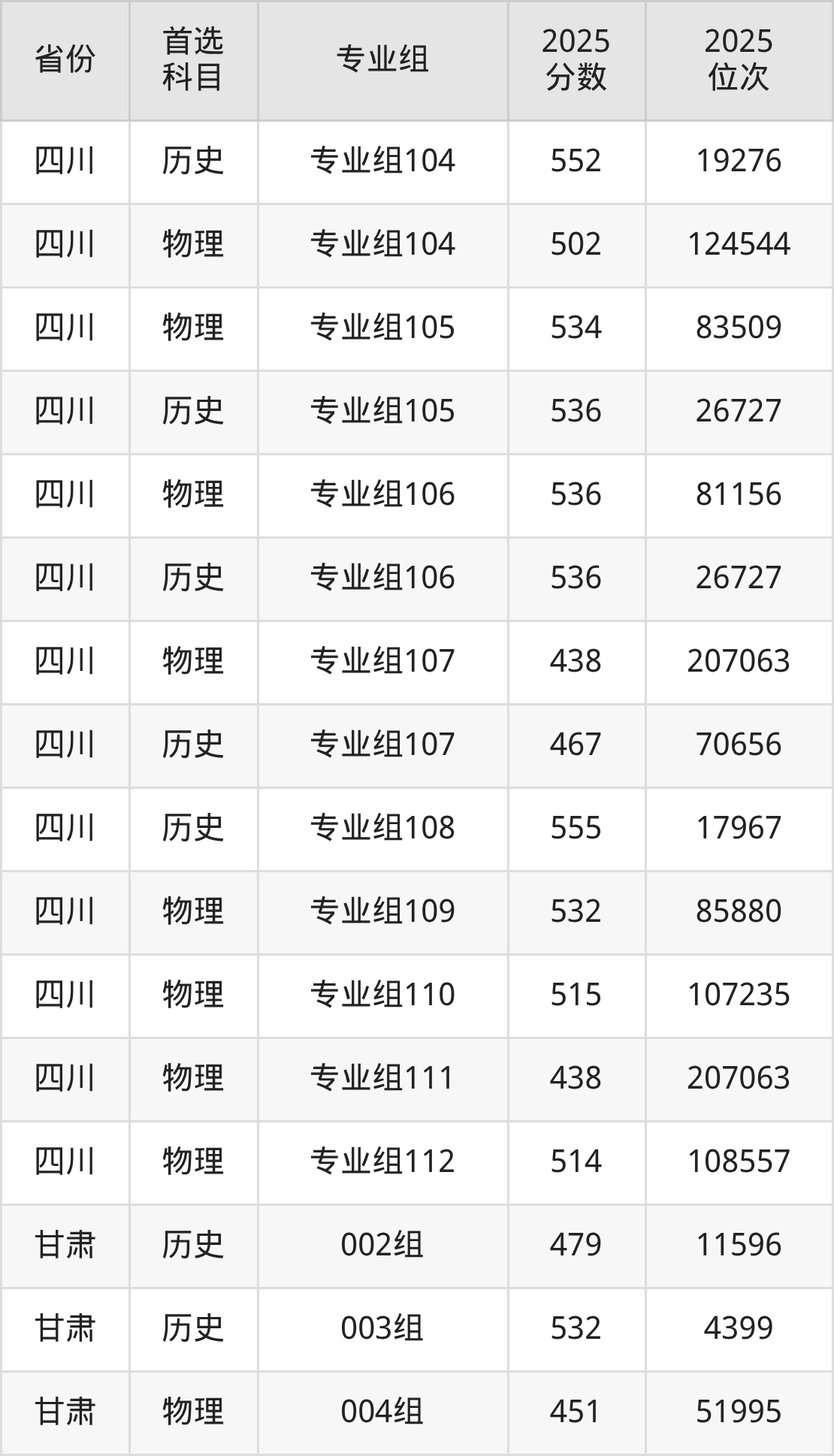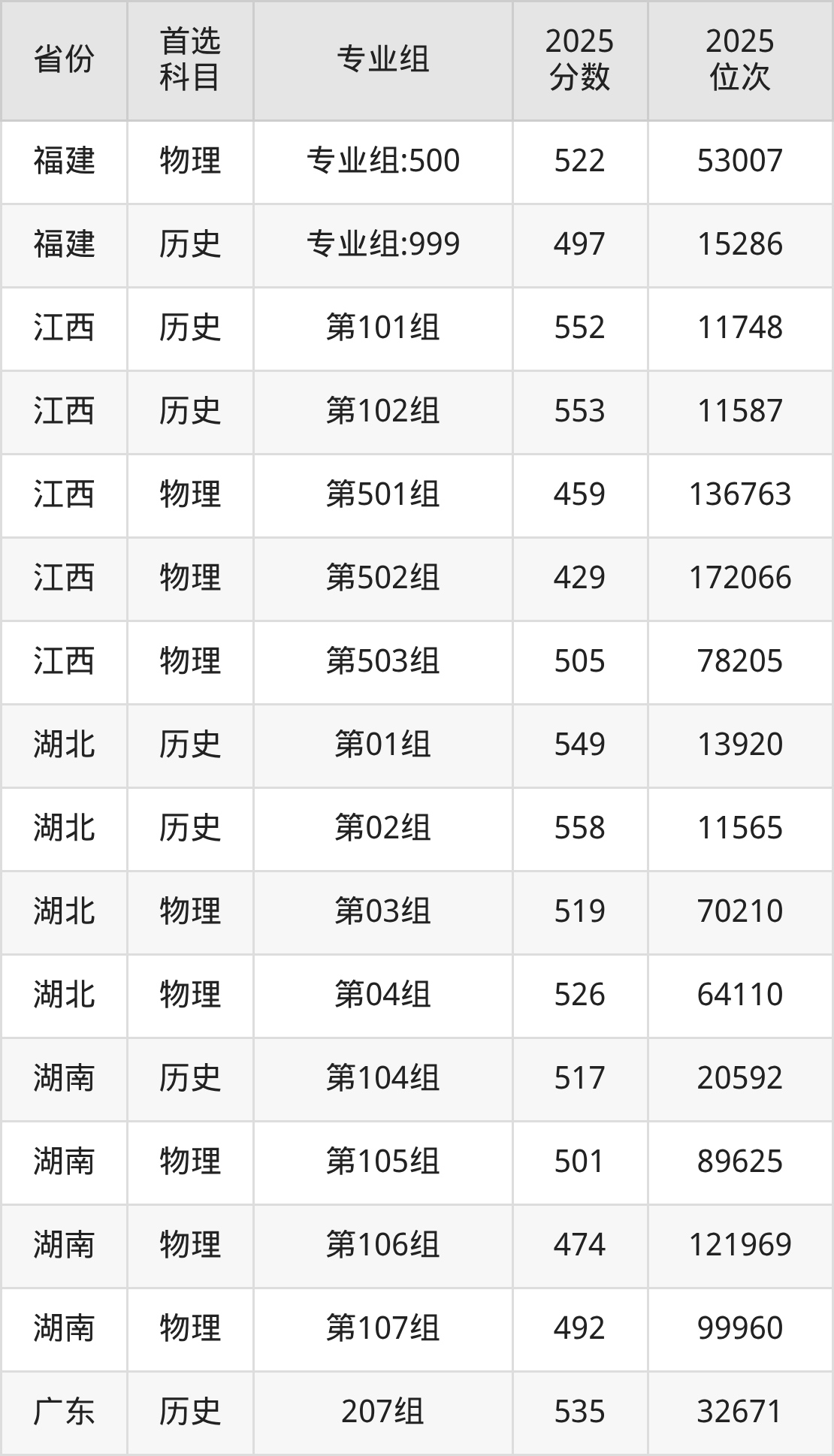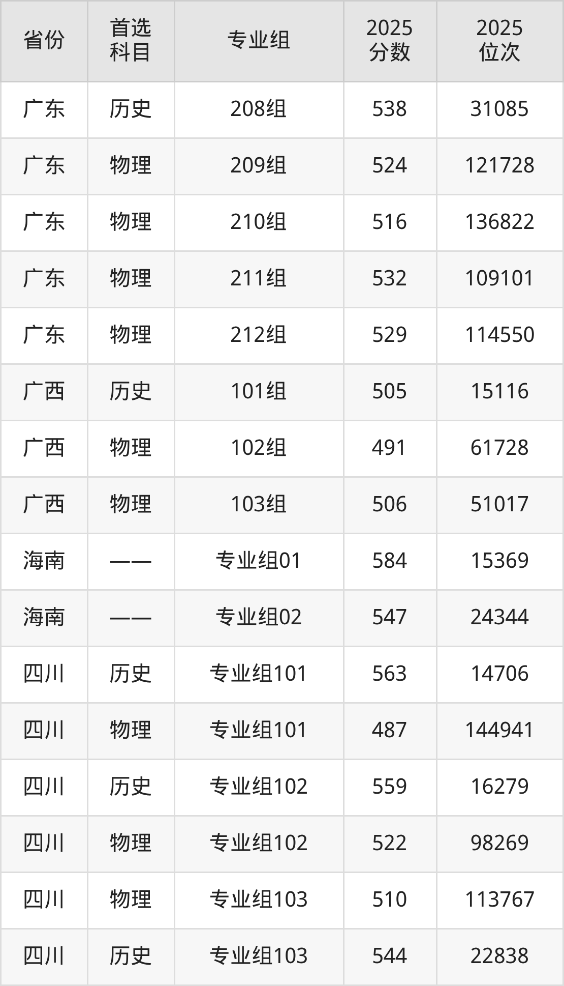 因为大部分地区目前只公布了院校(专业组)分数线,为了方便2026年考生参考,本文就整理出西华师范大学在全国各省不同科类的最低分: