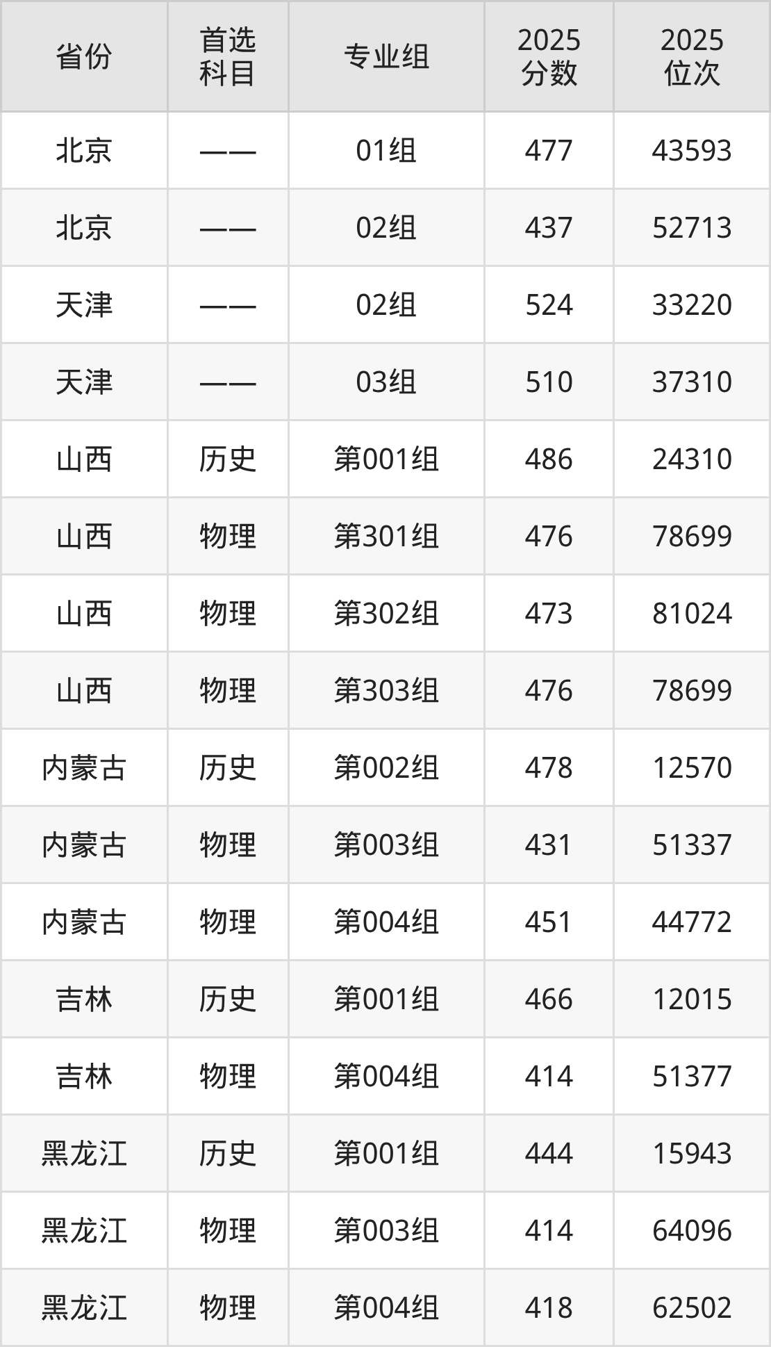 因为大部分地区目前只公布了院校(专业组)分数线,为了方便2026年考生参考,本文就整理出河北环境工程学院在全国各省不同科类的最低分: