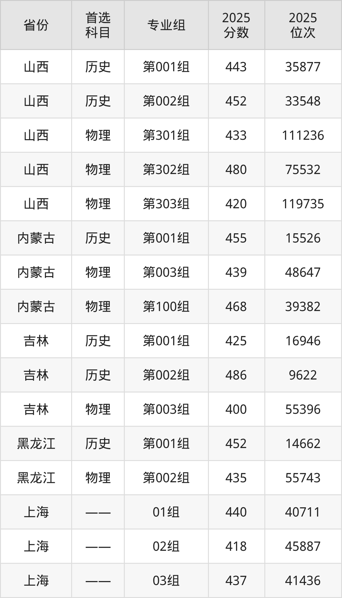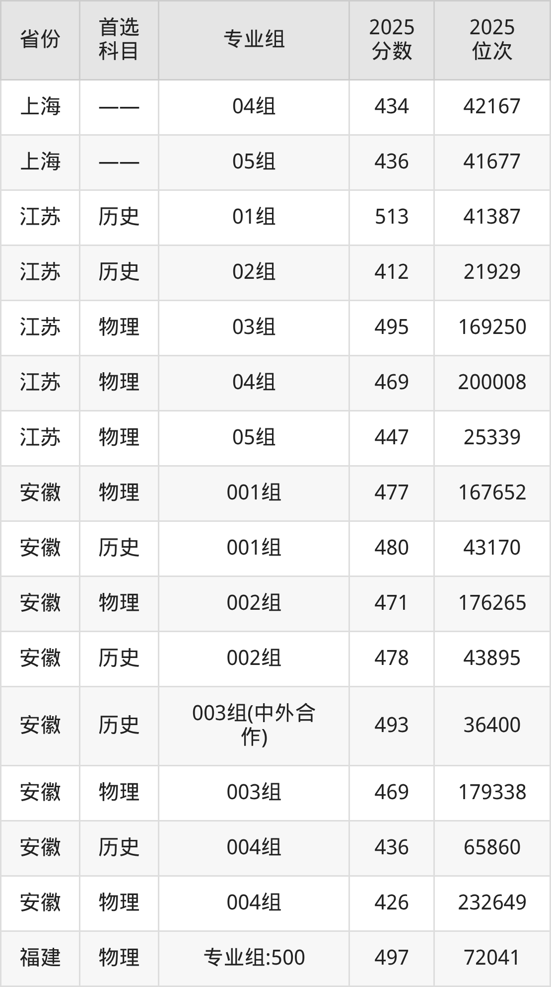 因为大部分地区目前只公布了院校(专业组)分数线,为了方便2026年考生参考,本文就整理出上海杉达学院在全国各省不同科类的最低分: