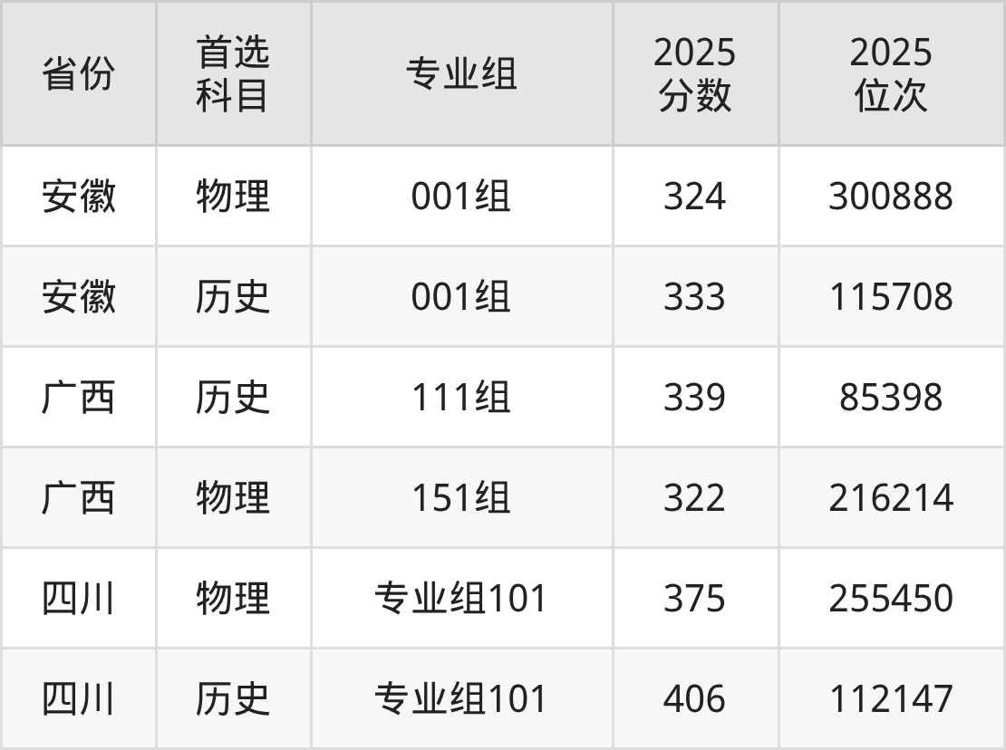 因为大部分地区目前只公布了院校(专业组)分数线,为了方便2026年考生参考,本文就整理出广西体育高等专科学校在全国各省不同科类的最低分: