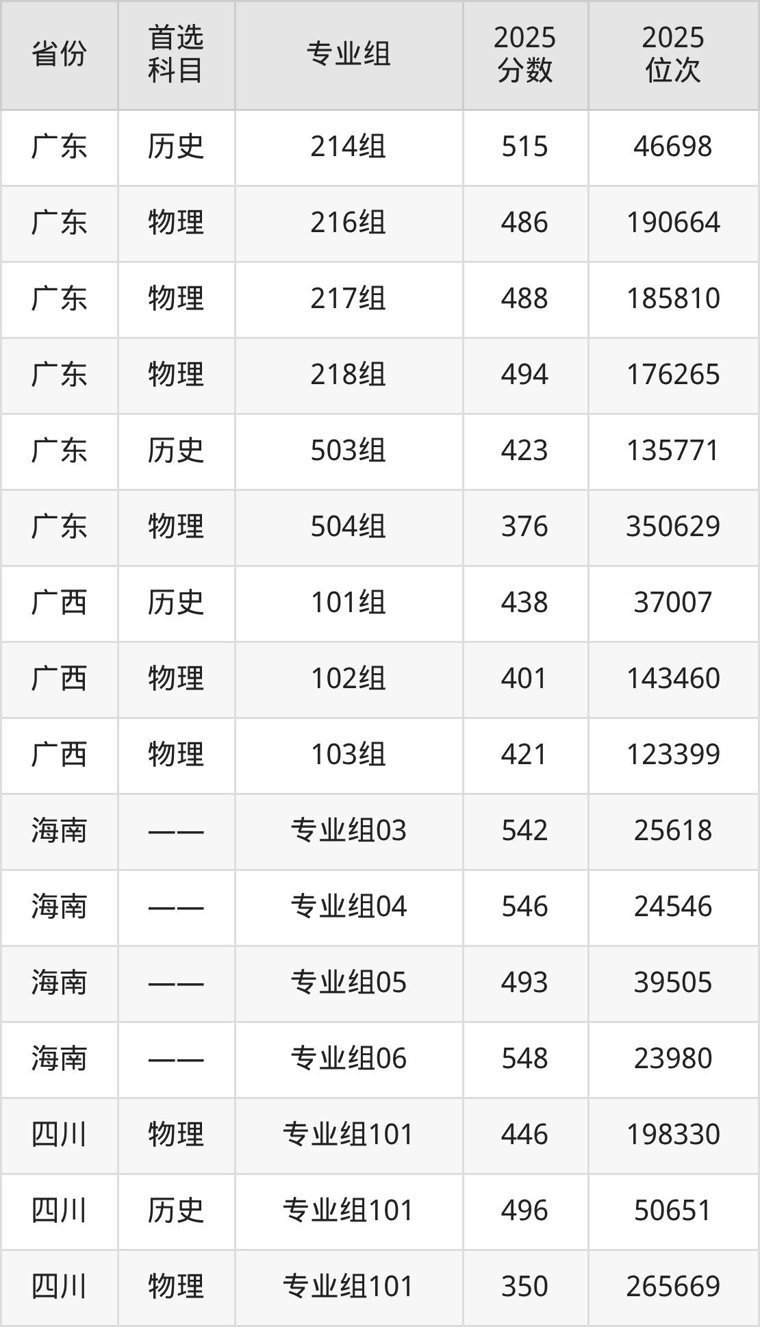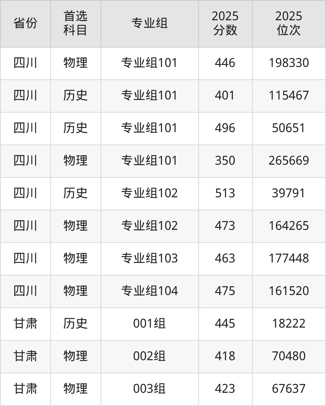 因为大部分地区目前只公布了院校(专业组)分数线,为了方便2026年考生参考,本文就整理出四川大学锦江学院在全国各省不同科类的最低分: