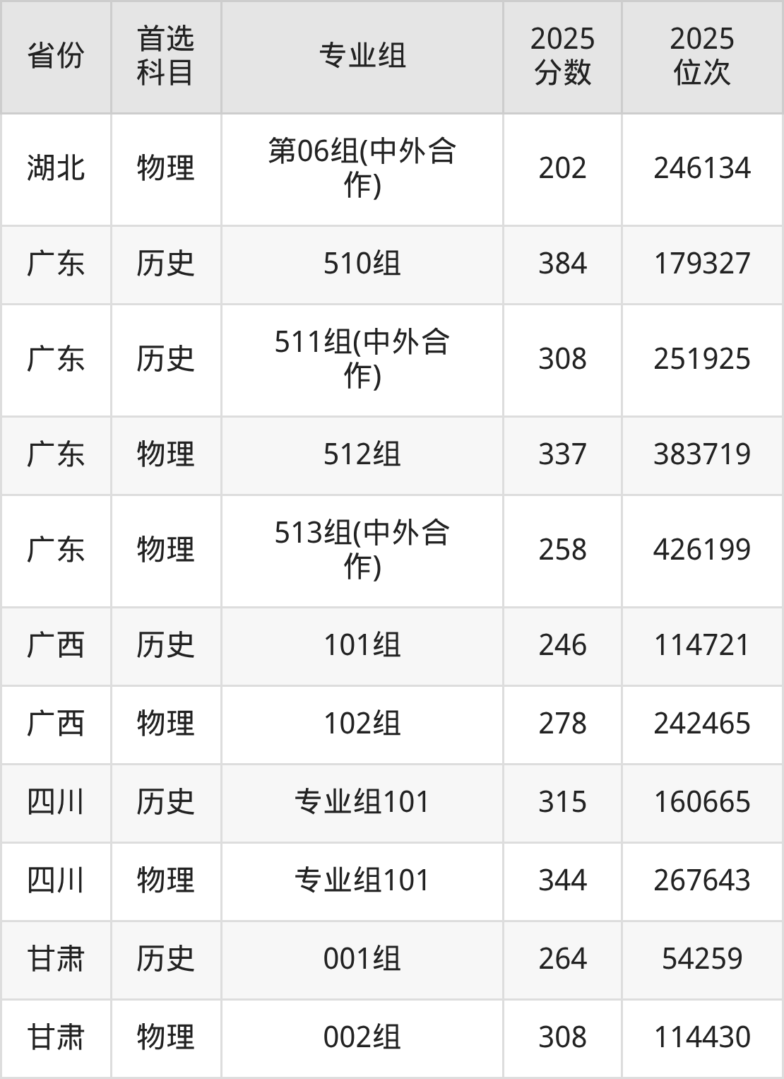 12.广东:物理类258分、426199位,历史类308分、251925位