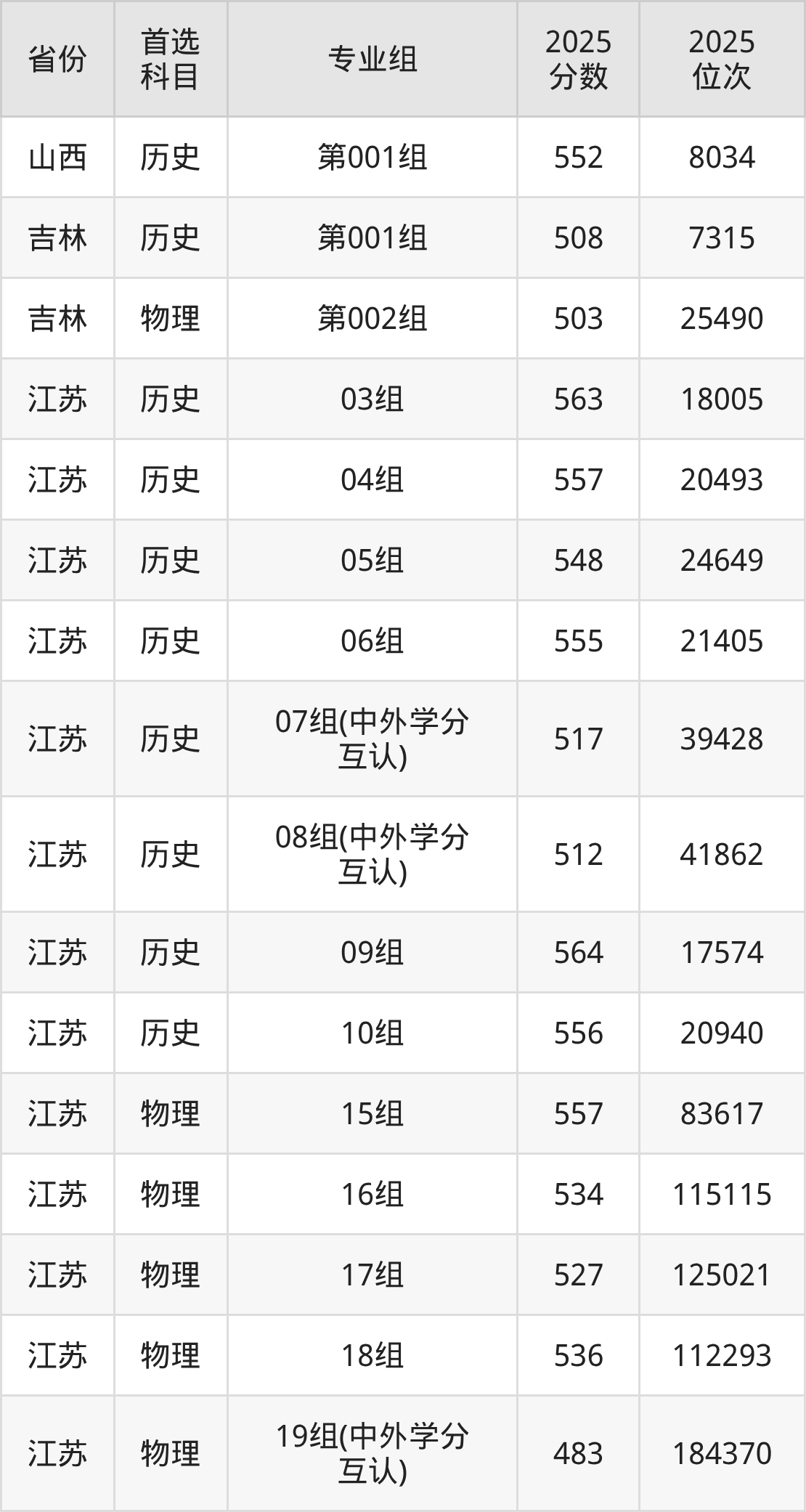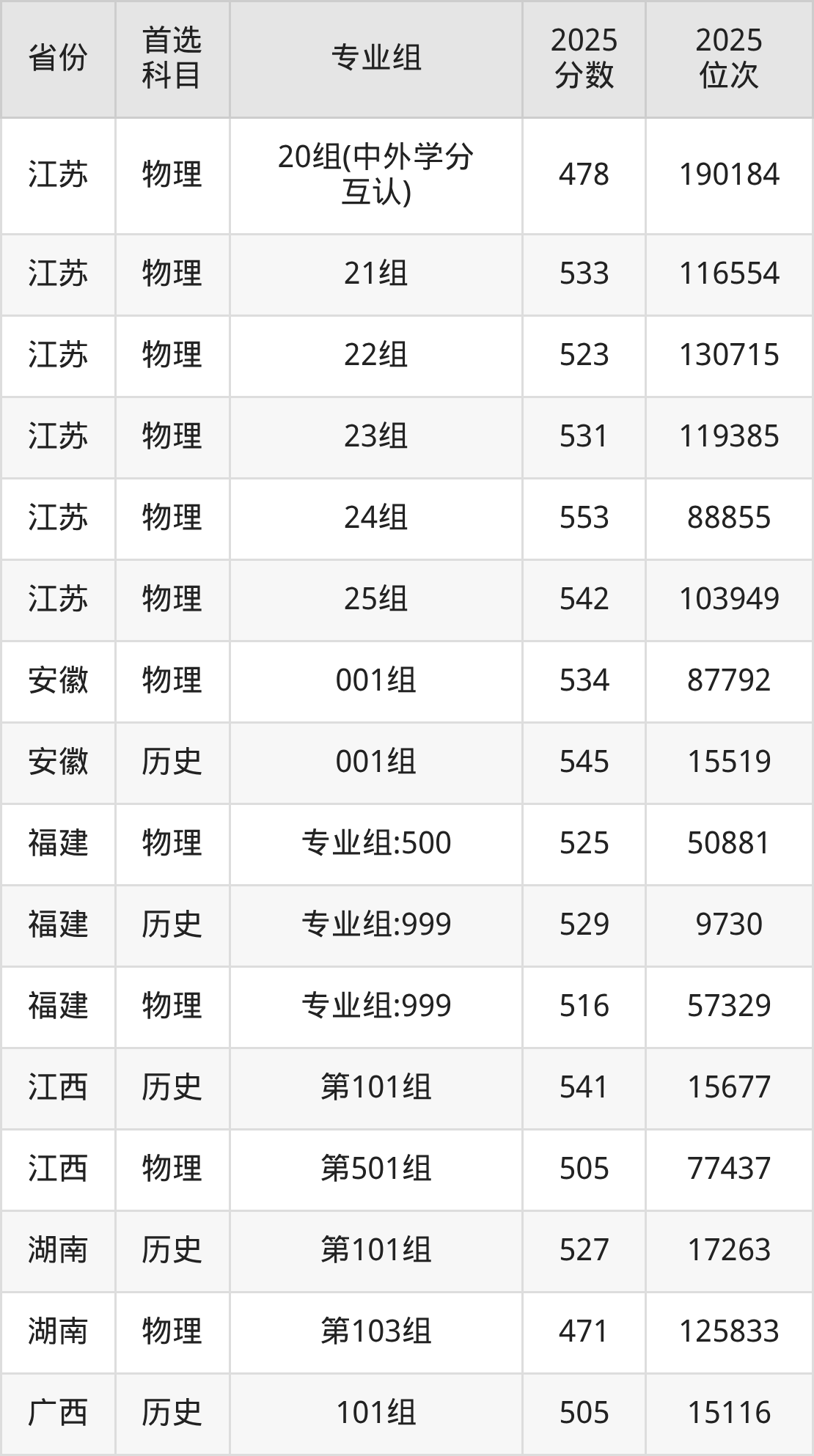 因为大部分地区目前只公布了院校(专业组)分数线,为了方便2026年考生参考,本文就整理出江苏第二师范学院在全国各省不同科类的最低分: