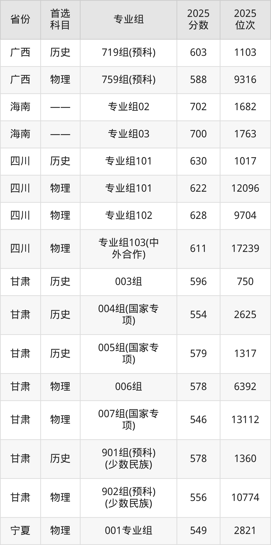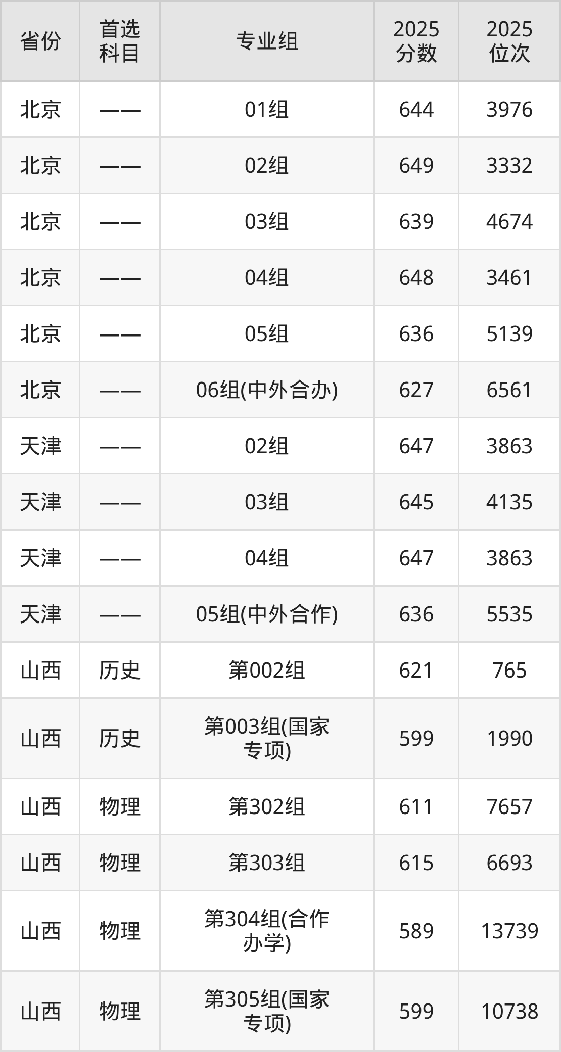 因为大部分地区目前只公布了院校(专业组)分数线,为了方便2026年考生参考,本文就整理出对外经济贸易大学在全国各省不同科类的最低分: