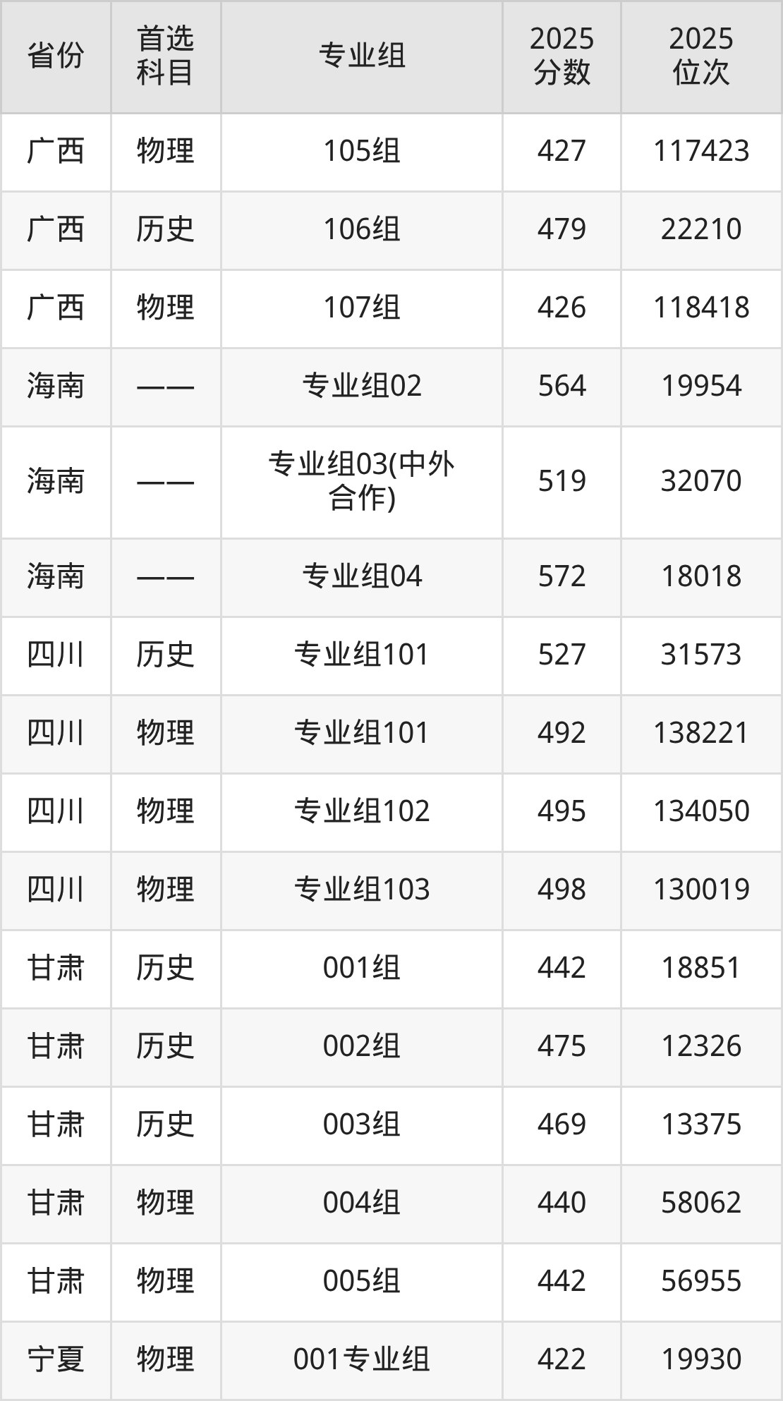 因为大部分地区目前只公布了院校(专业组)分数线,为了方便2026年考生参考,本文就整理出黄淮学院在全国各省不同科类的最低分:
