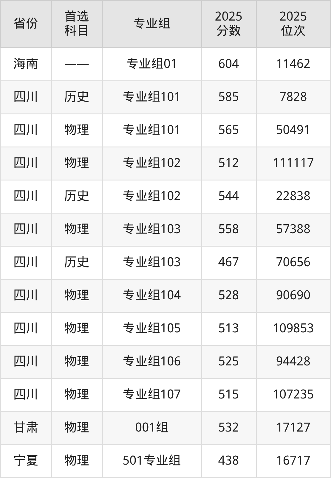 因为大部分地区目前只公布了院校(专业组)分数线,为了方便2026年考生参考,本文就整理出成都医学院在全国各省不同科类的最低分: