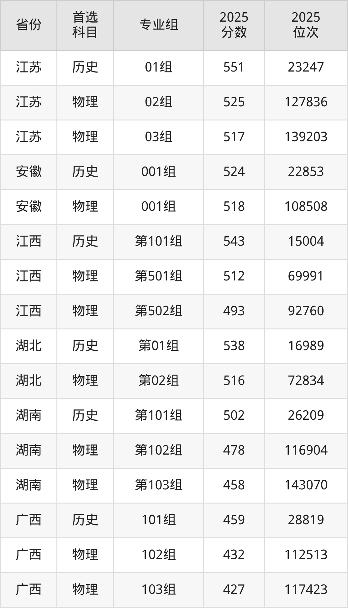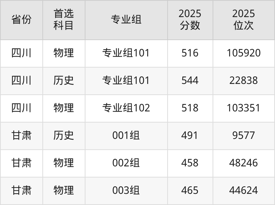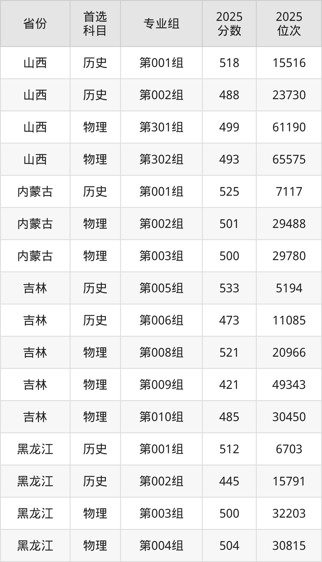 因为大部分地区目前只公布了院校(专业组)分数线,为了方便2026年考生参考,本文就整理出吉林警察学院在全国各省不同科类的最低分: