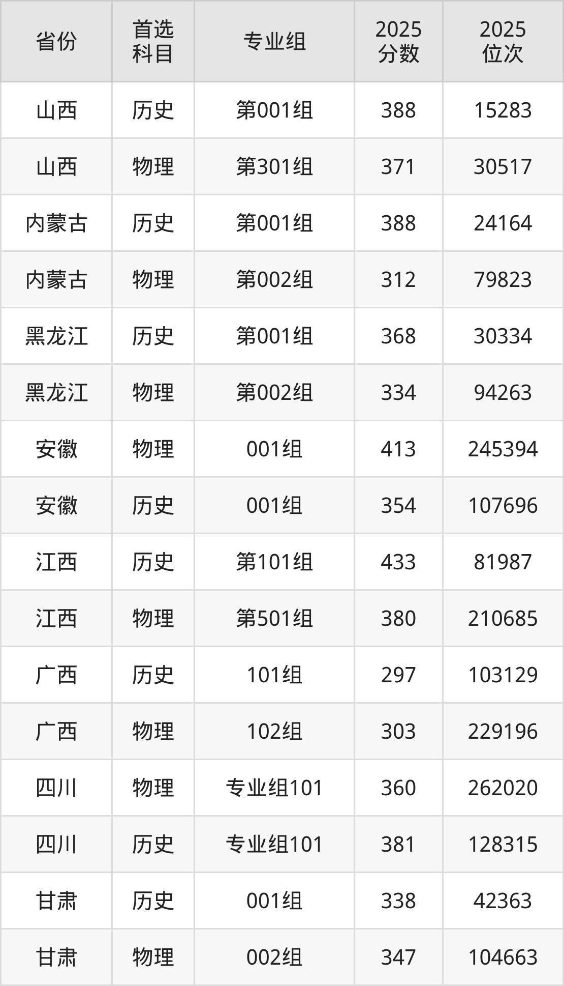 11.四川:历史类381分、128315位,物理类360分、262020位