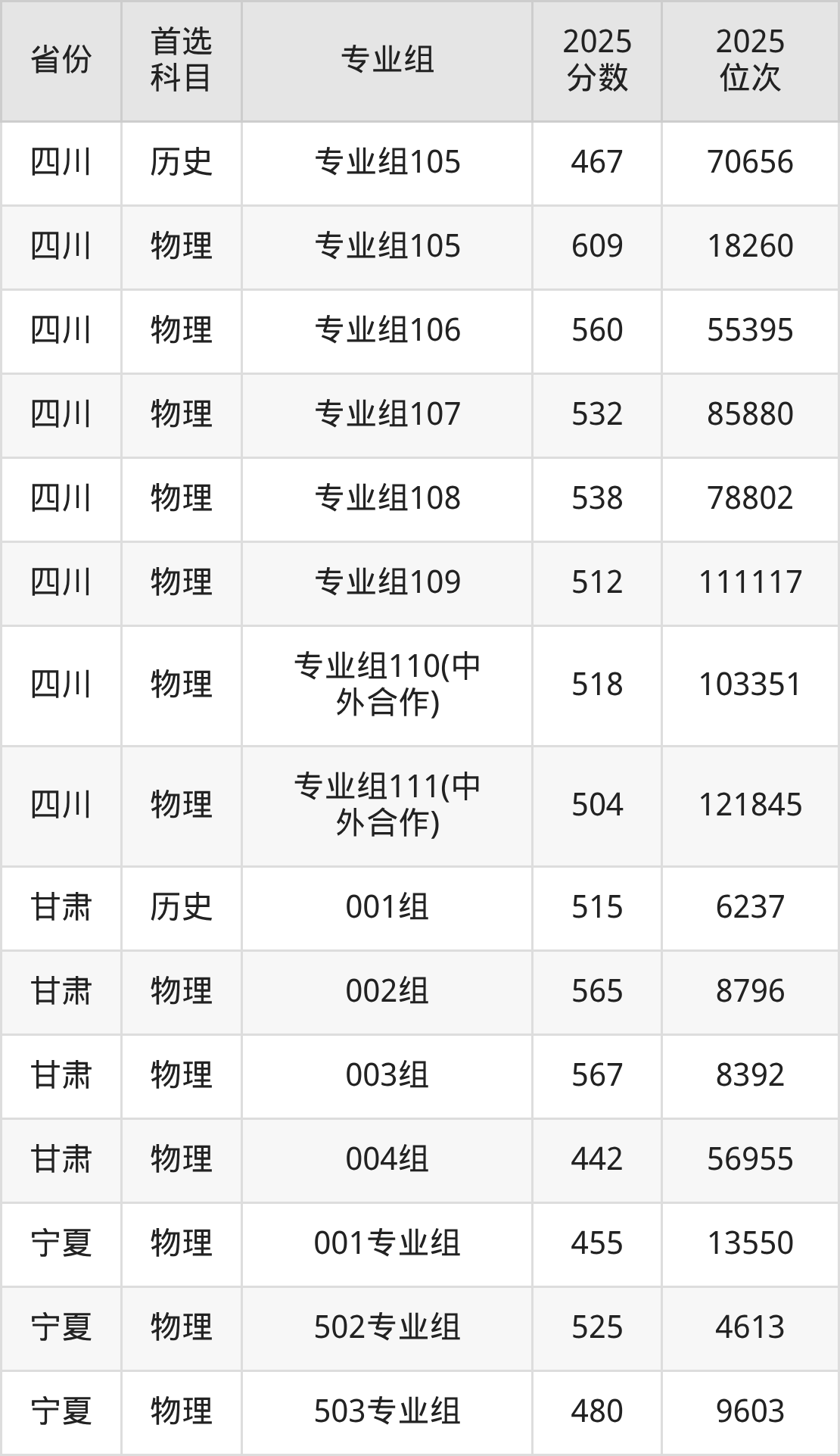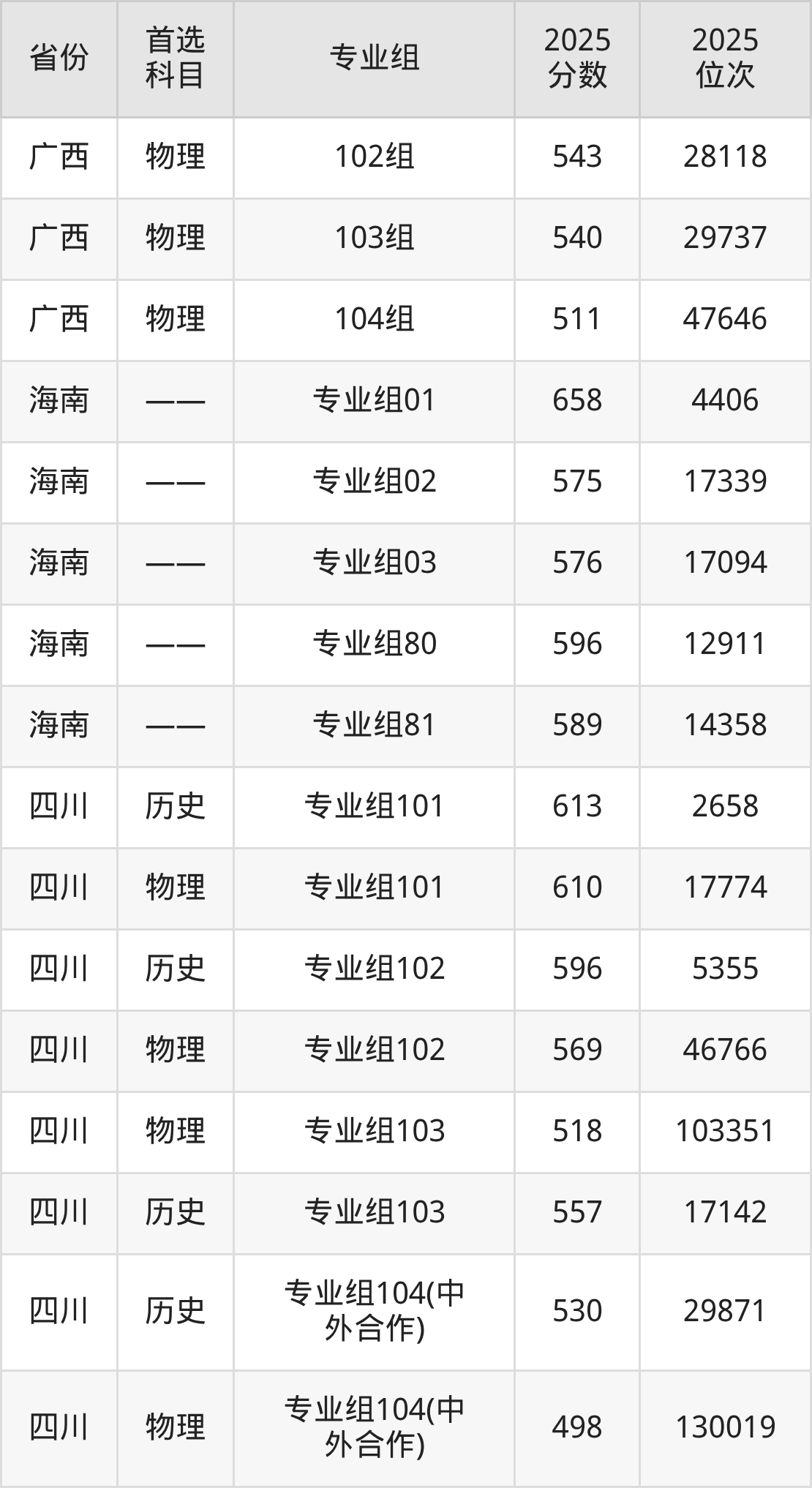 因为大部分地区目前只公布了院校(专业组)分数线,为了方便2026年考生参考,本文就整理出成都中医药大学在全国各省不同科类的最低分: