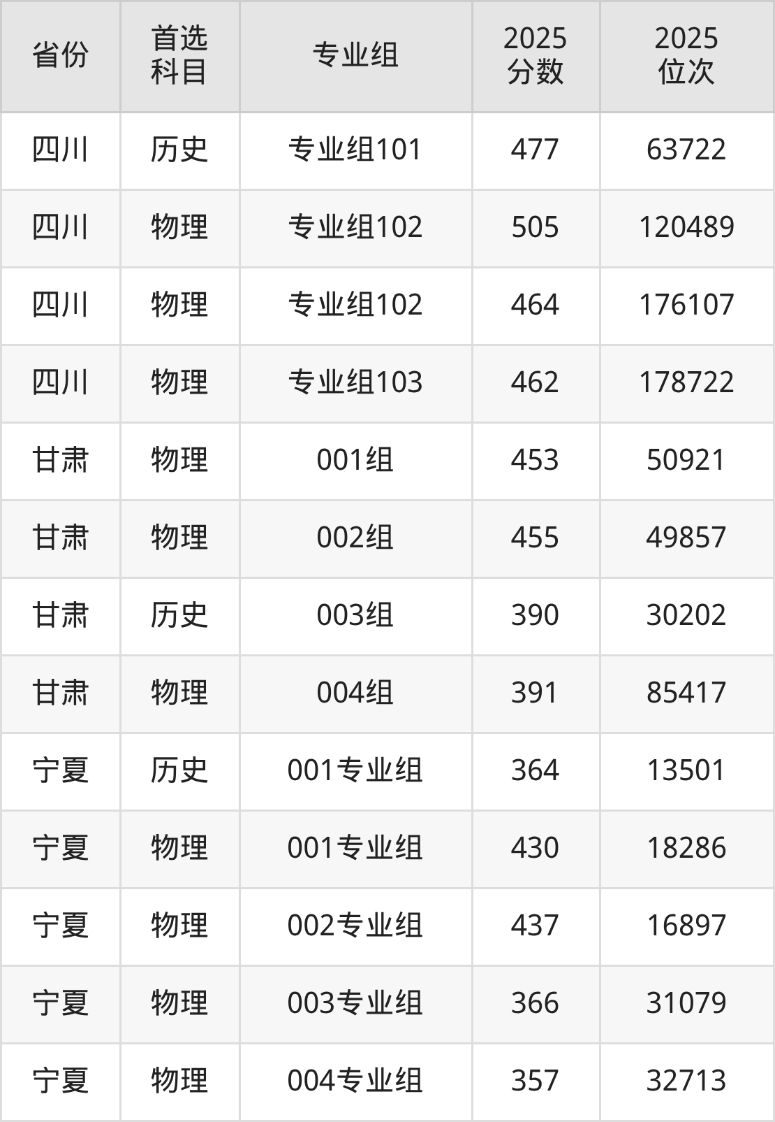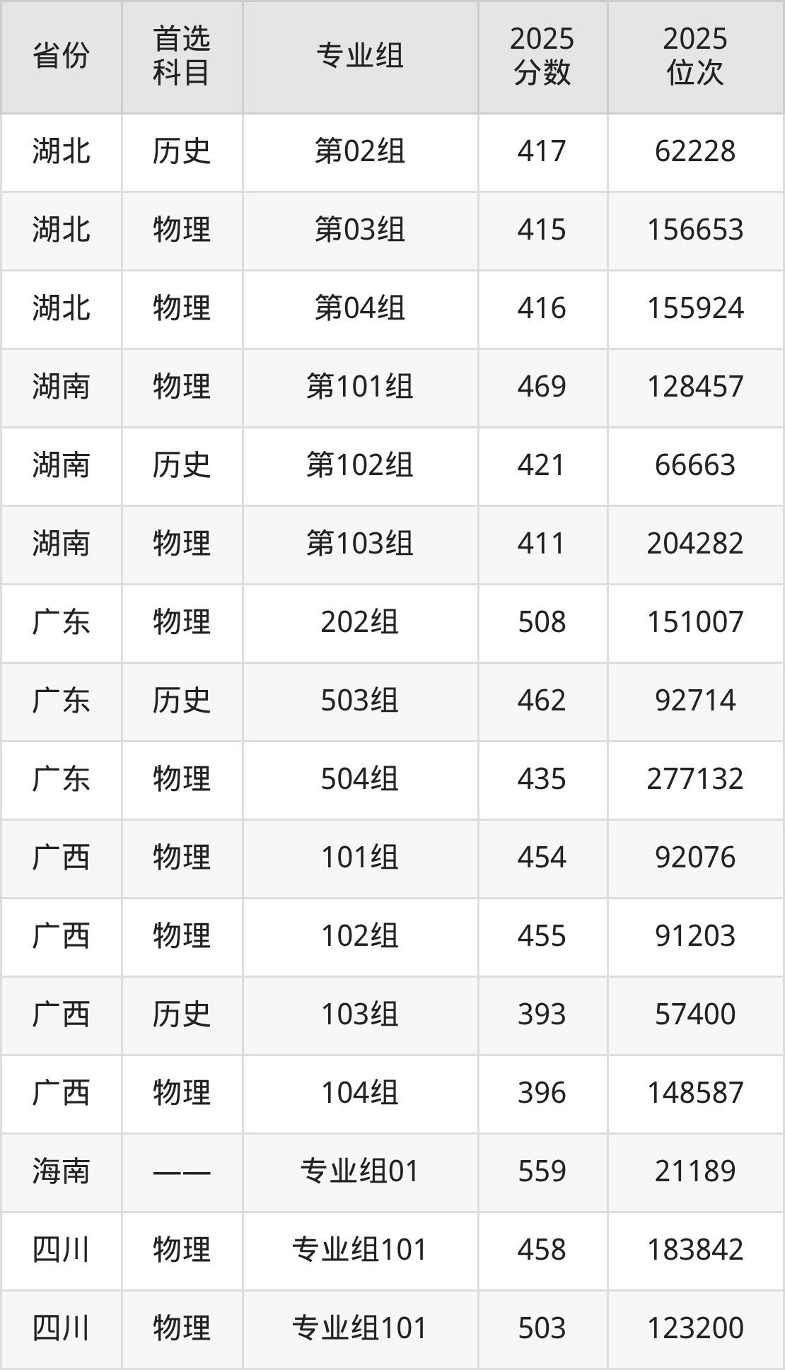 因为大部分地区目前只公布了院校(专业组)分数线,为了方便2026年考生参考,本文就整理出四川工程职业技术大学在全国各省不同科类的最低分:
