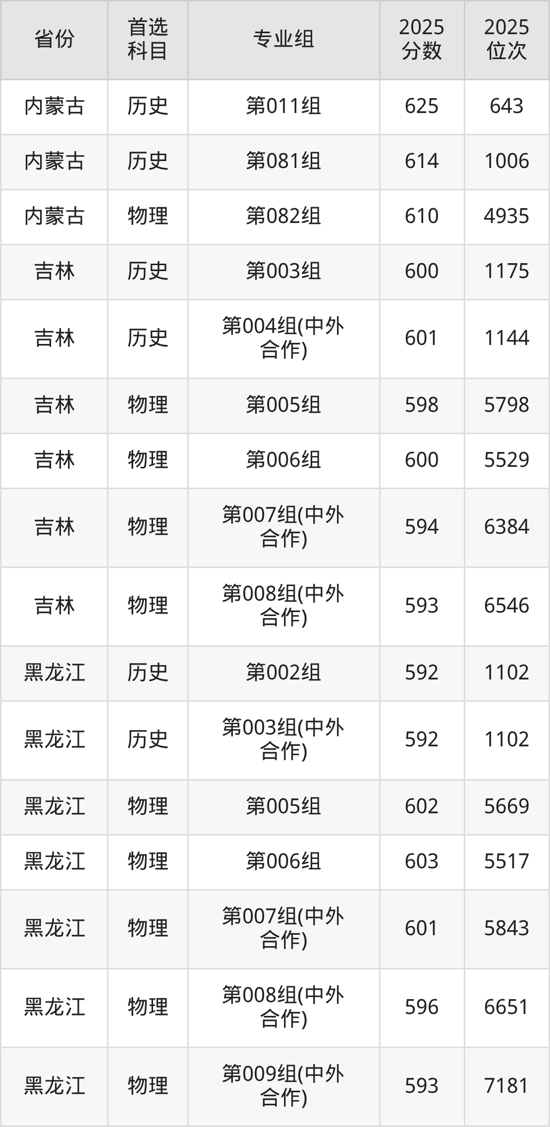 7.吉林:历史类600分、1175位,物理类593分、6546位