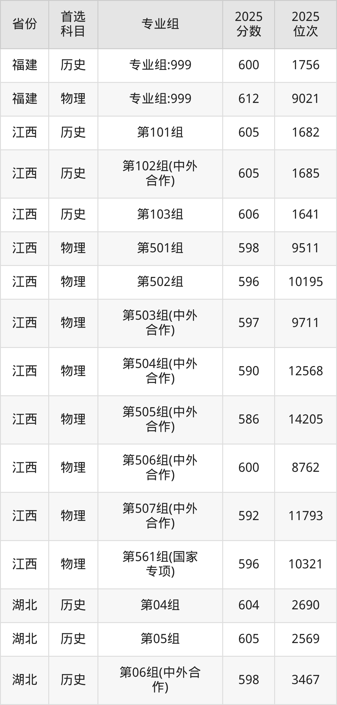 13.福建:历史类600分、1756位,物理类612分、9021位