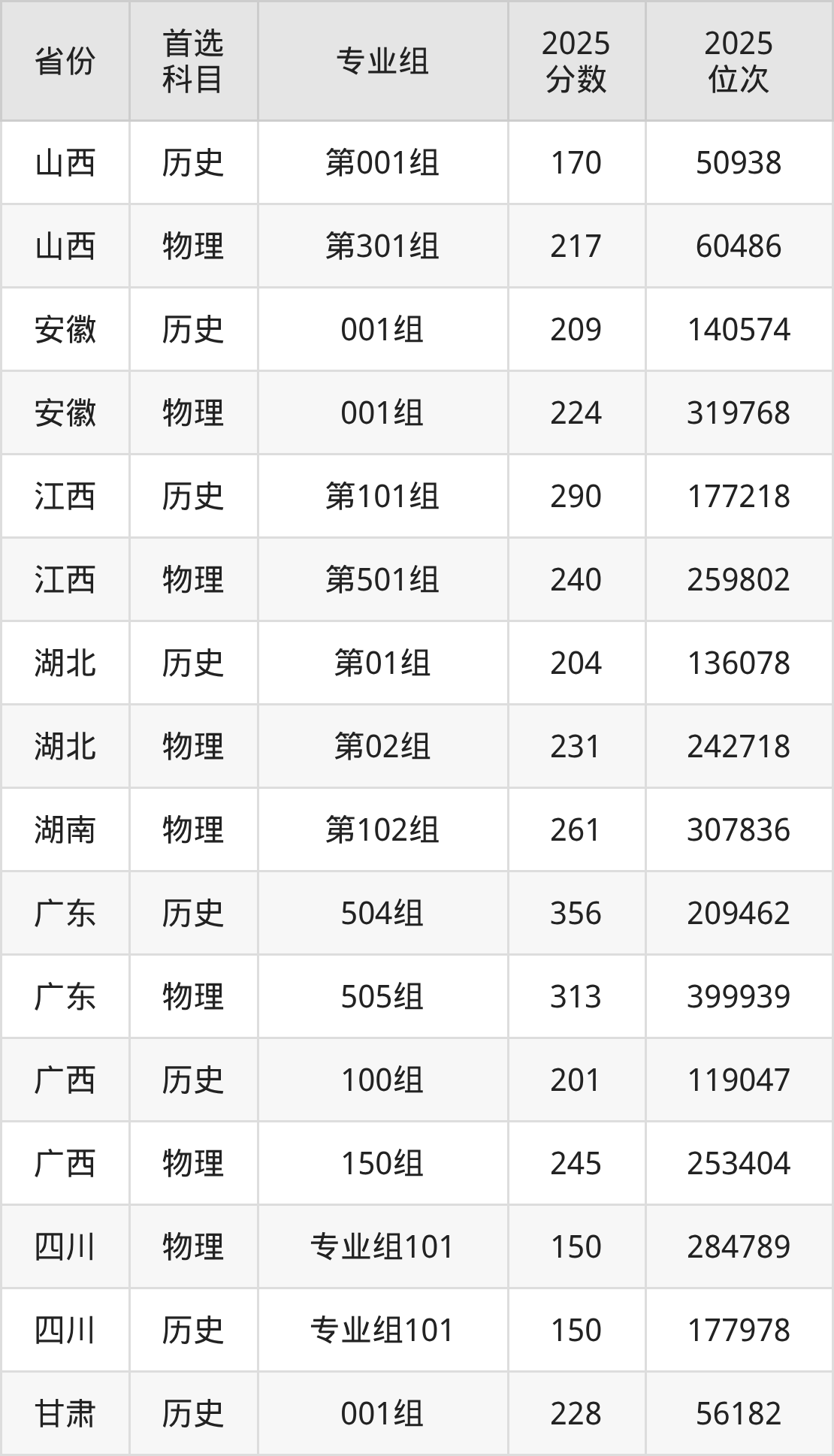 13.四川:物理类150分、284789位,历史类150分、177978位