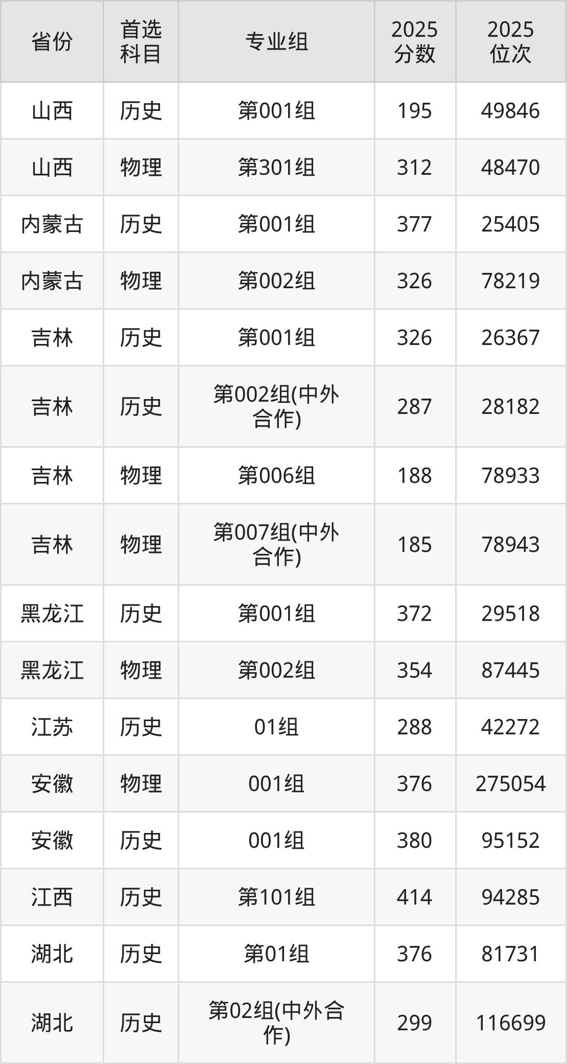 因为大部分地区目前只公布了院校(专业组)分数线,为了方便2026年考生参考,本文就整理出长春师范高等专科学校在全国各省不同科类的最低分: