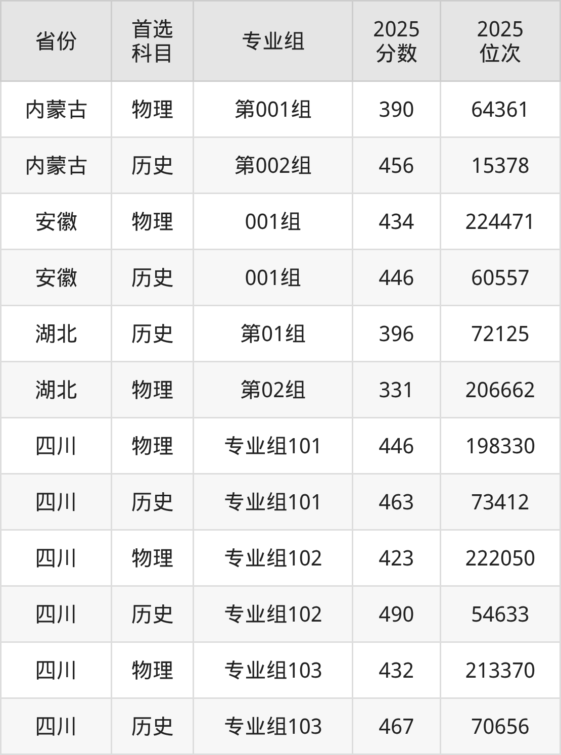 5.四川:物理类423分、222050位,历史类463分、73412位