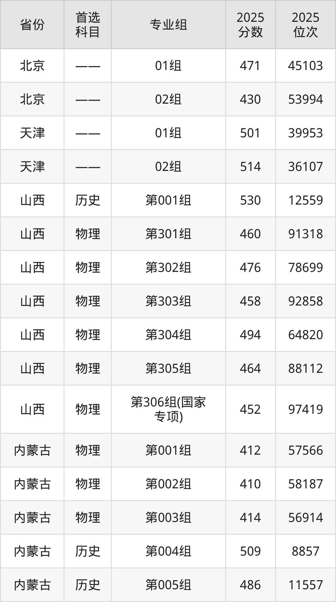因为大部分地区目前只公布了院校(专业组)分数线,为了方便2026年考生参考,本文就整理出塔里木大学在全国各省不同科类的最低分: