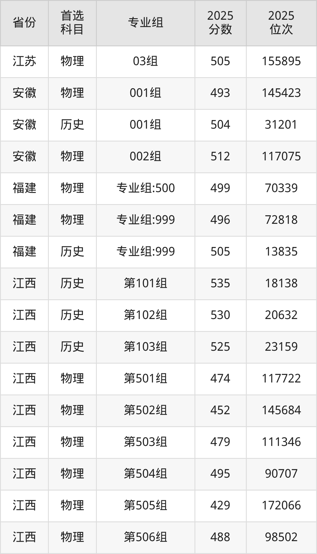 因为大部分地区目前只公布了院校(专业组)分数线,为了方便2026年考生参考,本文就整理出三明学院在全国各省不同科类的最低分: