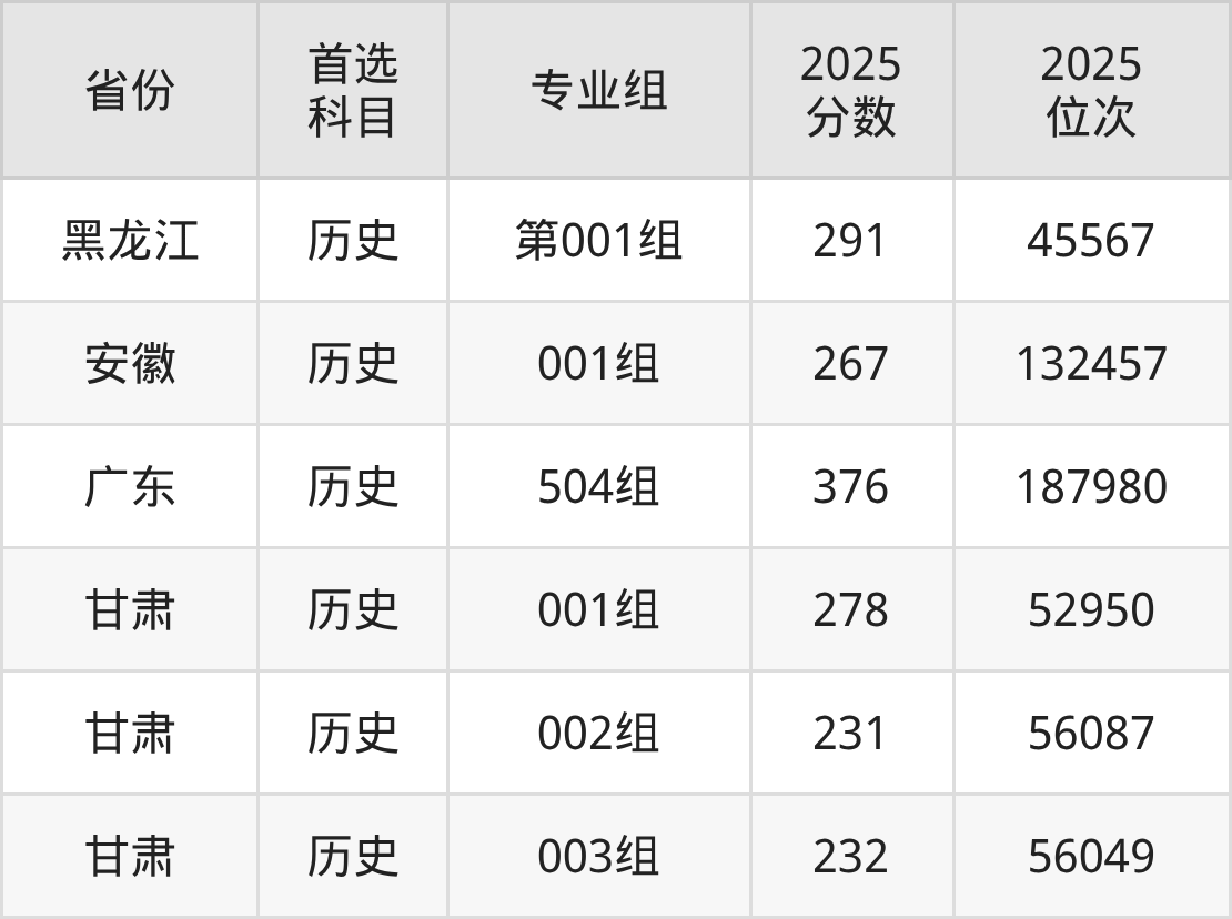 7.甘肃:历史类231分、56087位