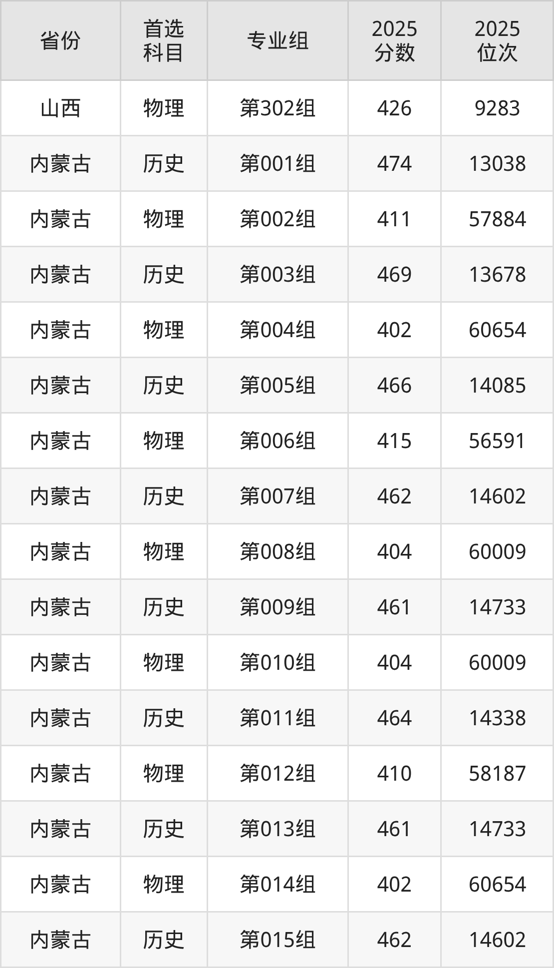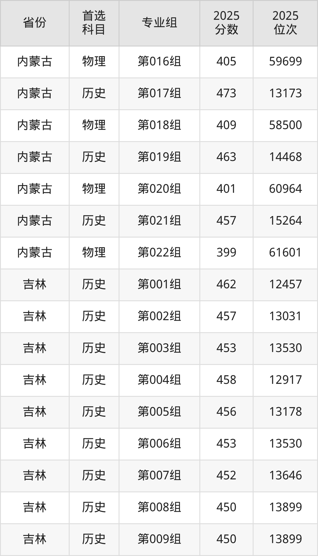 3.内蒙古:物理类399分、61601位,历史类457分、15264位