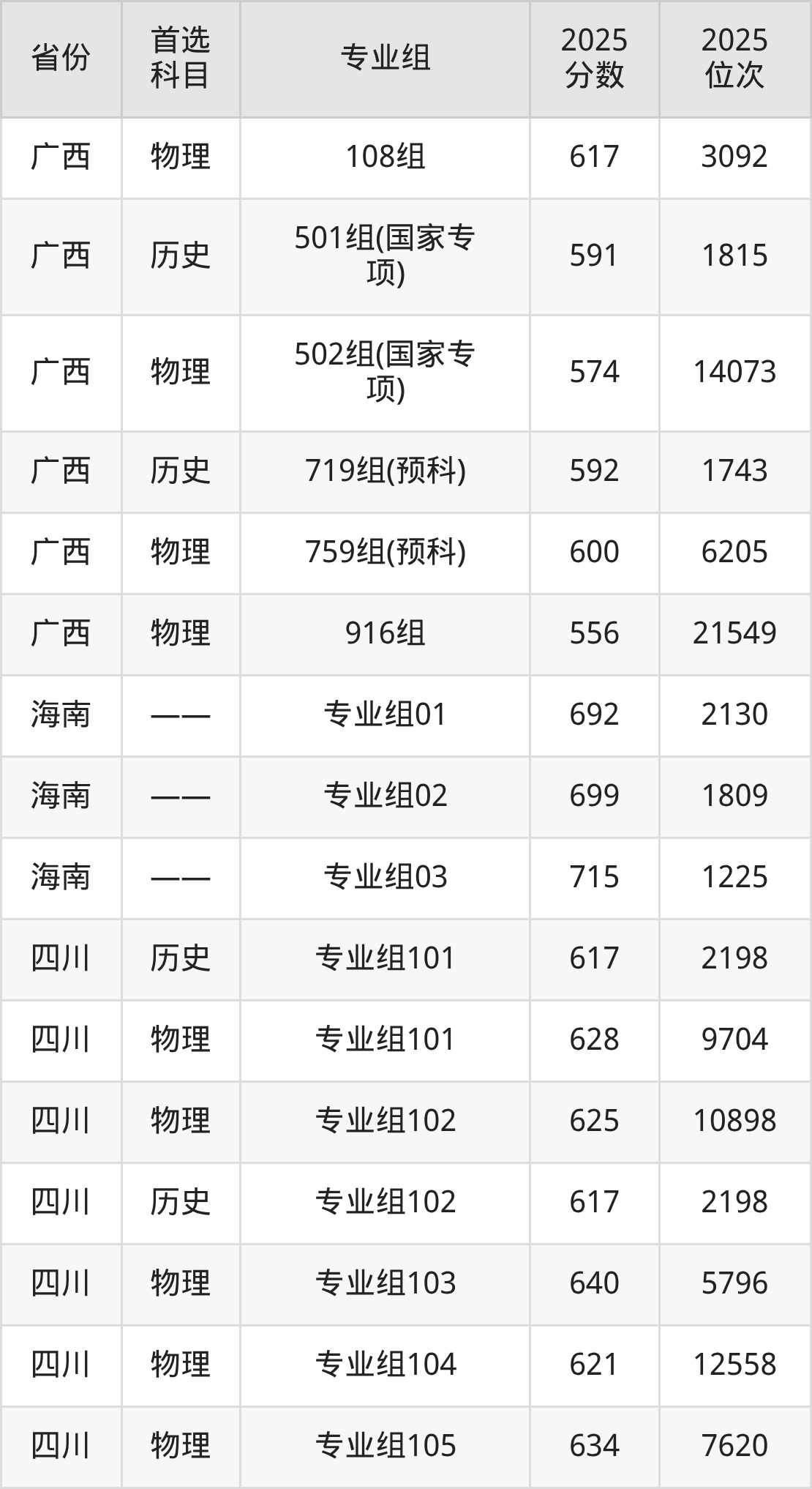因为大部分地区目前只公布了院校(专业组)分数线,为了方便2026年考生参考,本文就整理出山东大学在全国各省不同科类的最低分: