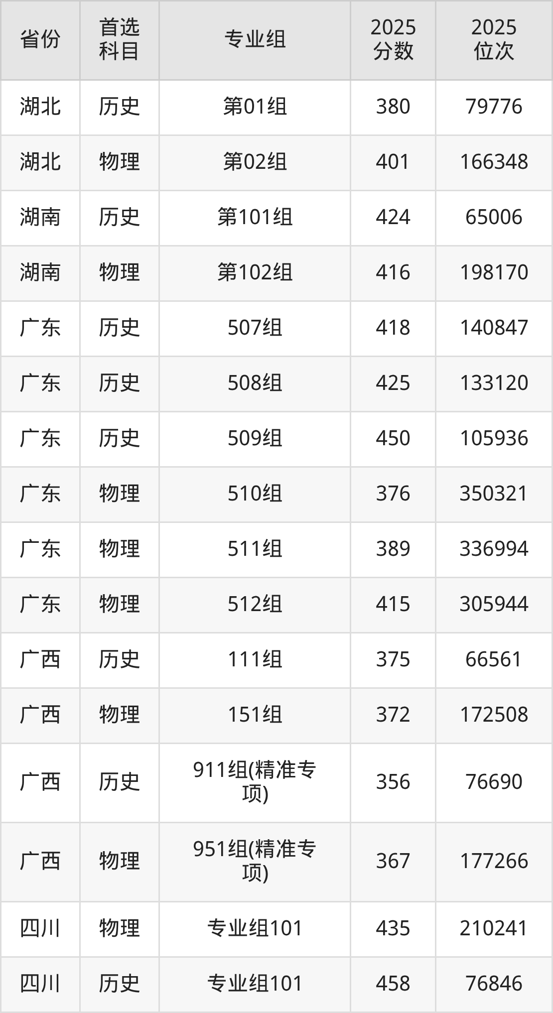 因为大部分地区目前只公布了院校(专业组)分数线,为了方便2026年考生参考,本文就整理出广西电力职业技术学院在全国各省不同科类的最低分: