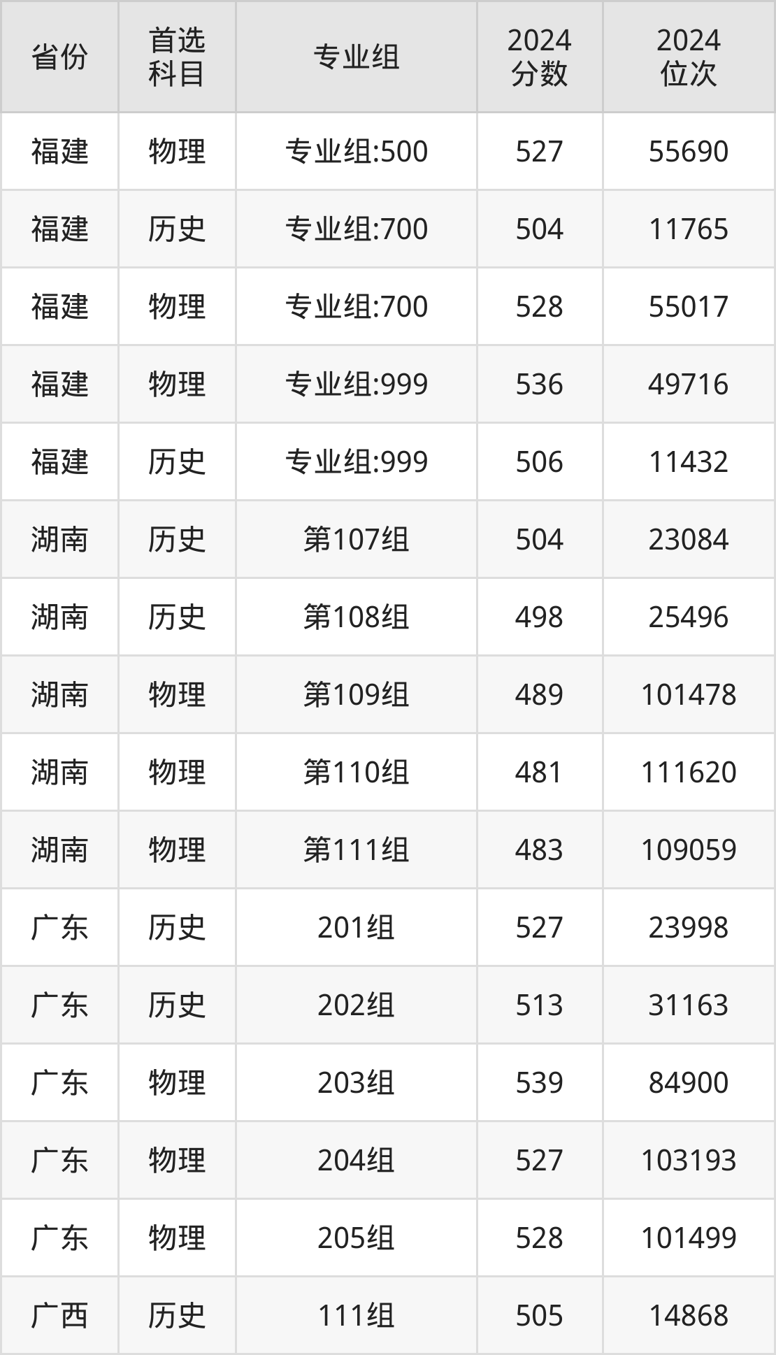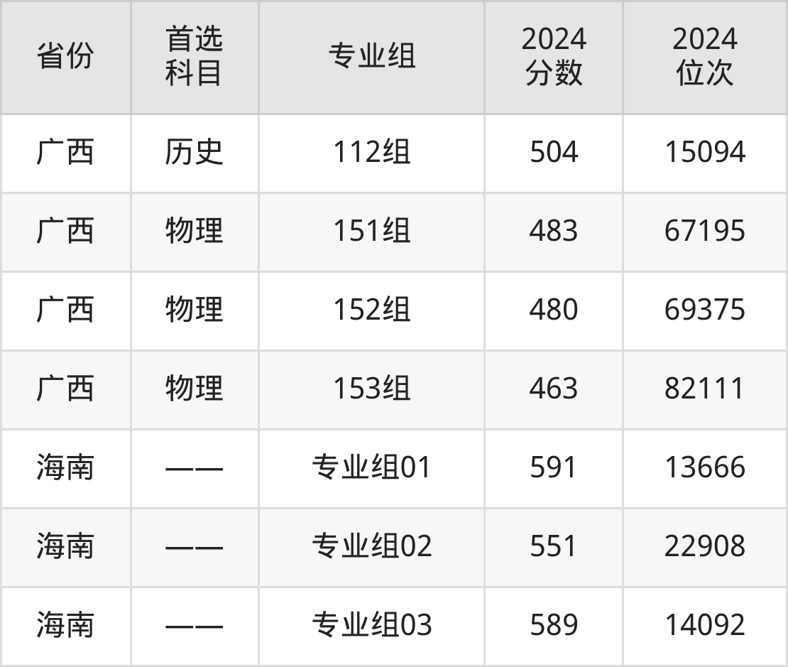 因为大部分地区目前只公布了院校(专业组)分数线,为了方便2025年考生参考,本文就整理出湖南警察学院在全国各省不同科类的最低分: