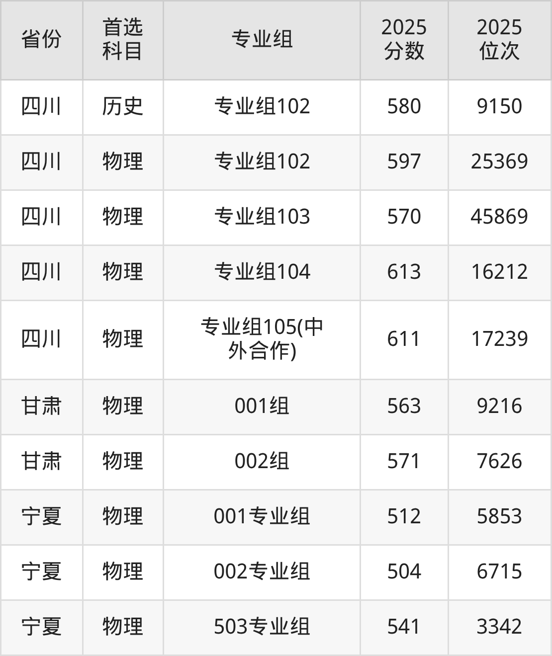 25.宁夏:物理类504分、6715位