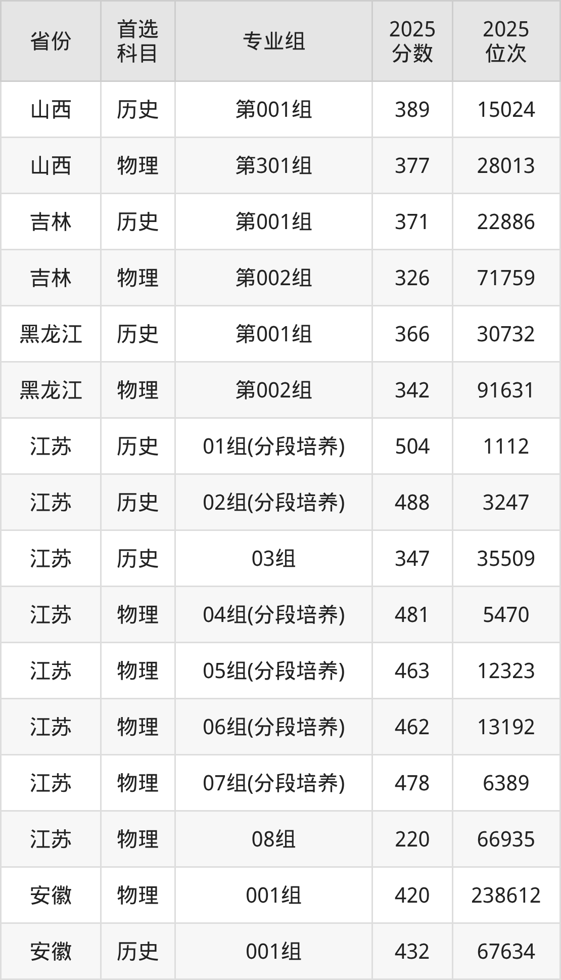 因为大部分地区目前只公布了院校(专业组)分数线,为了方便2026年考生参考,本文就整理出江苏旅游职业学院在全国各省不同科类的最低分: