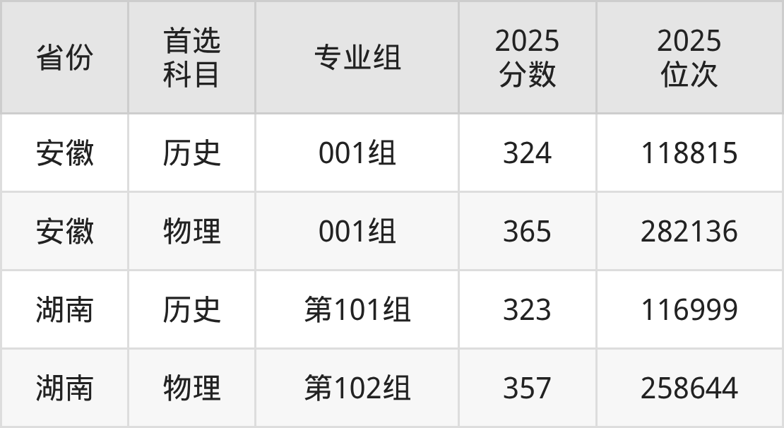 4.湖南:历史类323分、116999位,物理类357分、258644位