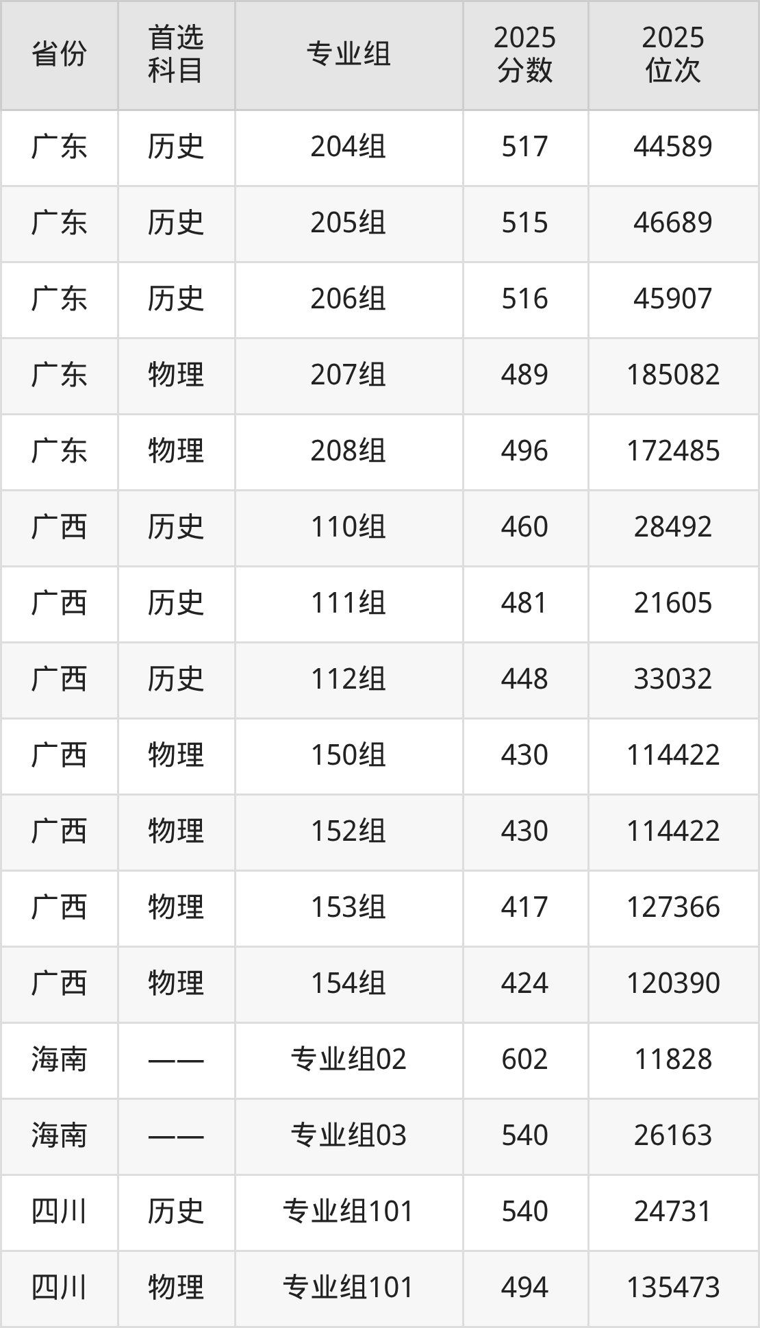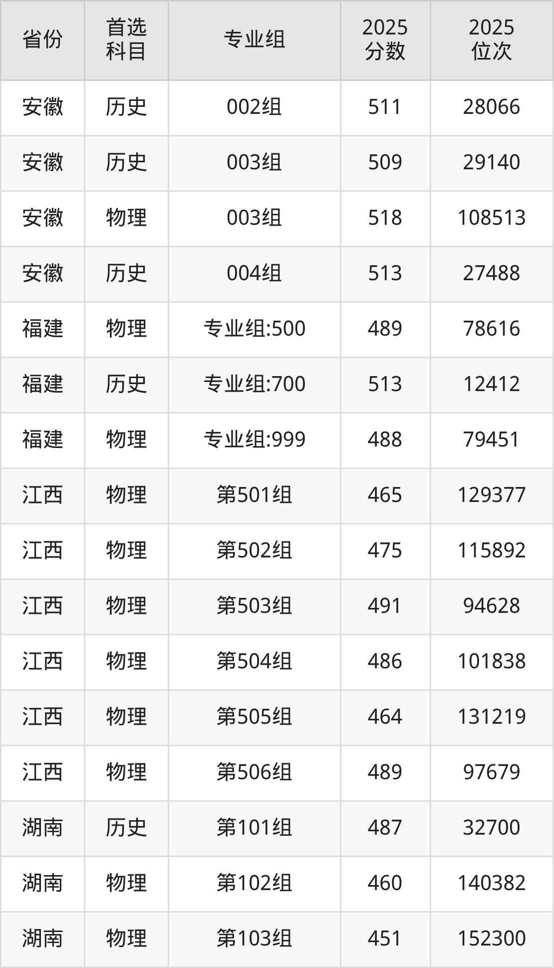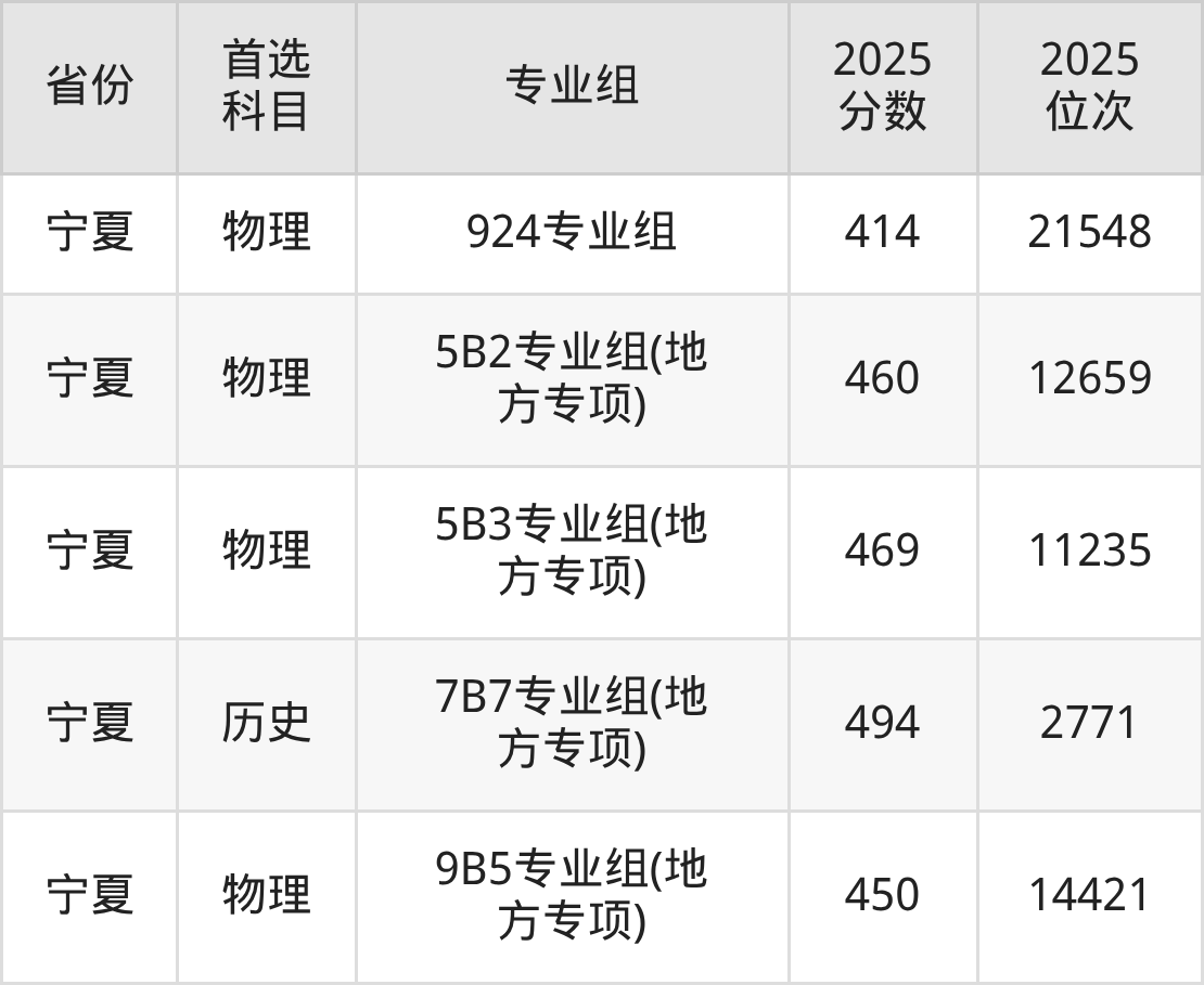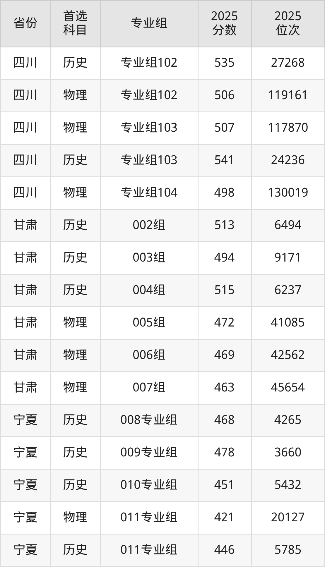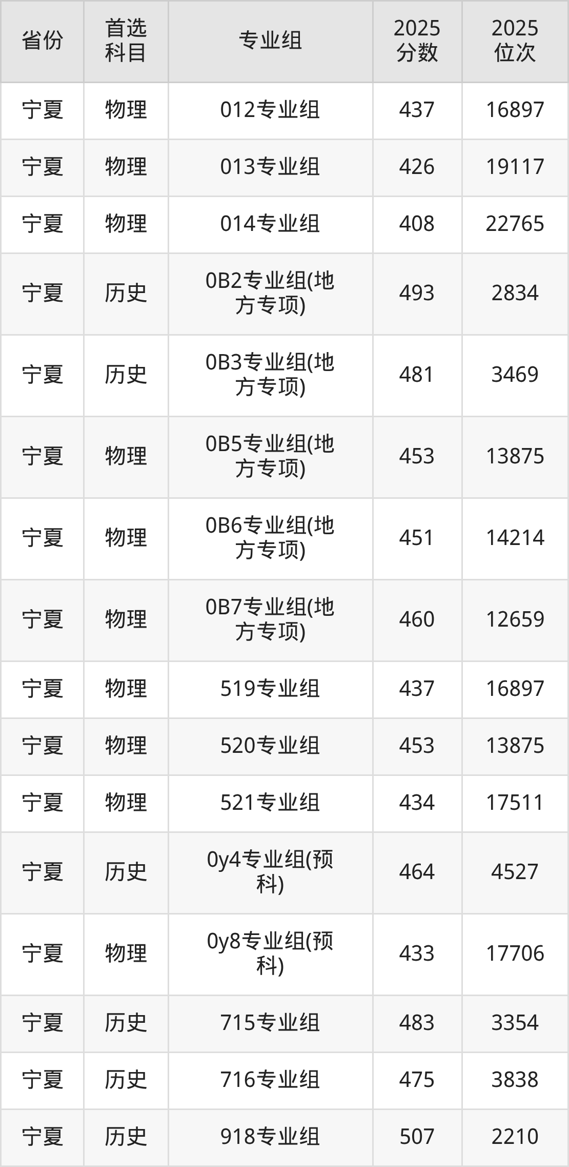因为大部分地区目前只公布了院校(专业组)分数线,为了方便2026年考生参考,本文就整理出宁夏师范大学在全国各省不同科类的最低分: