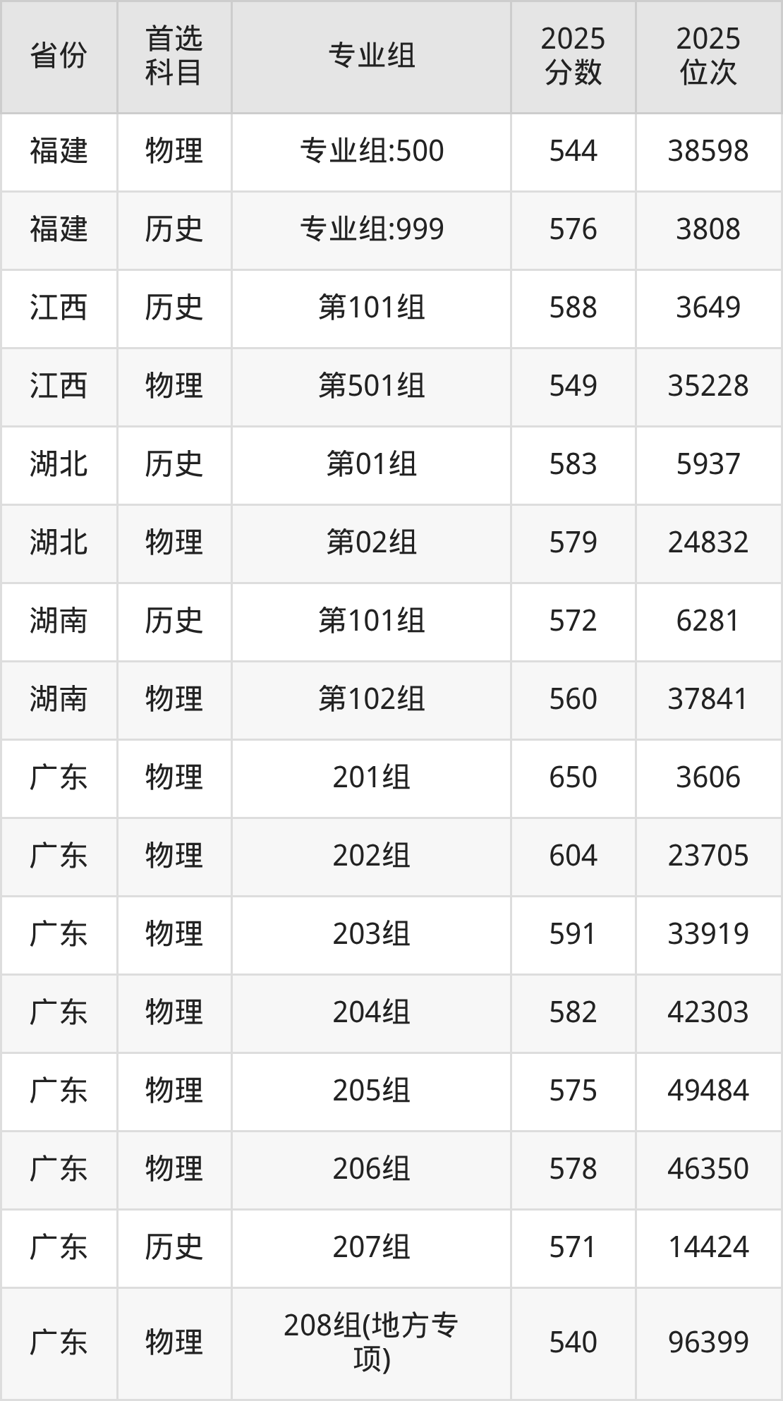 因为大部分地区目前只公布了院校(专业组)分数线,为了方便2026年考生参考,本文就整理出南方医科大学在全国各省不同科类的最低分: