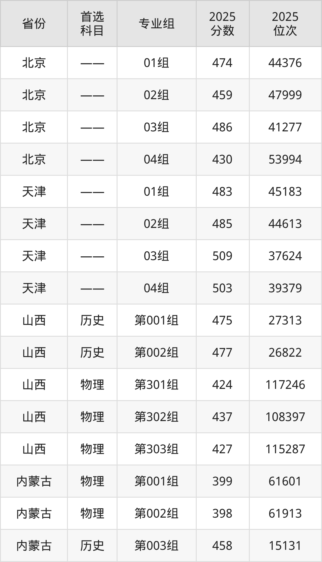 因为大部分地区目前只公布了院校(专业组)分数线,为了方便2026年考生参考,本文就整理出北京科技大学天津学院在全国各省不同科类的最低分: