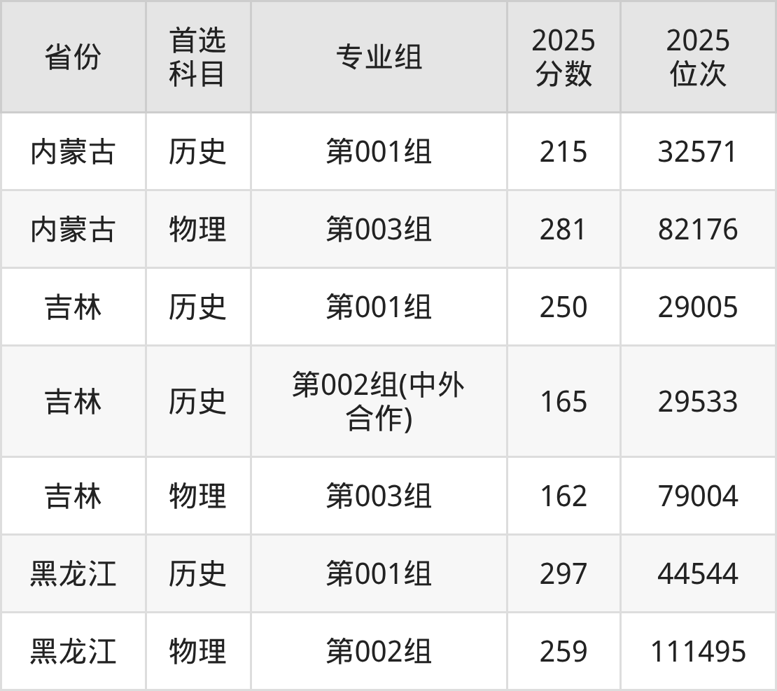 因为大部分地区目前只公布了院校(专业组)分数线,为了方便2026年考生参考,本文就整理出吉林科技职业技术学院在全国各省不同科类的最低分: