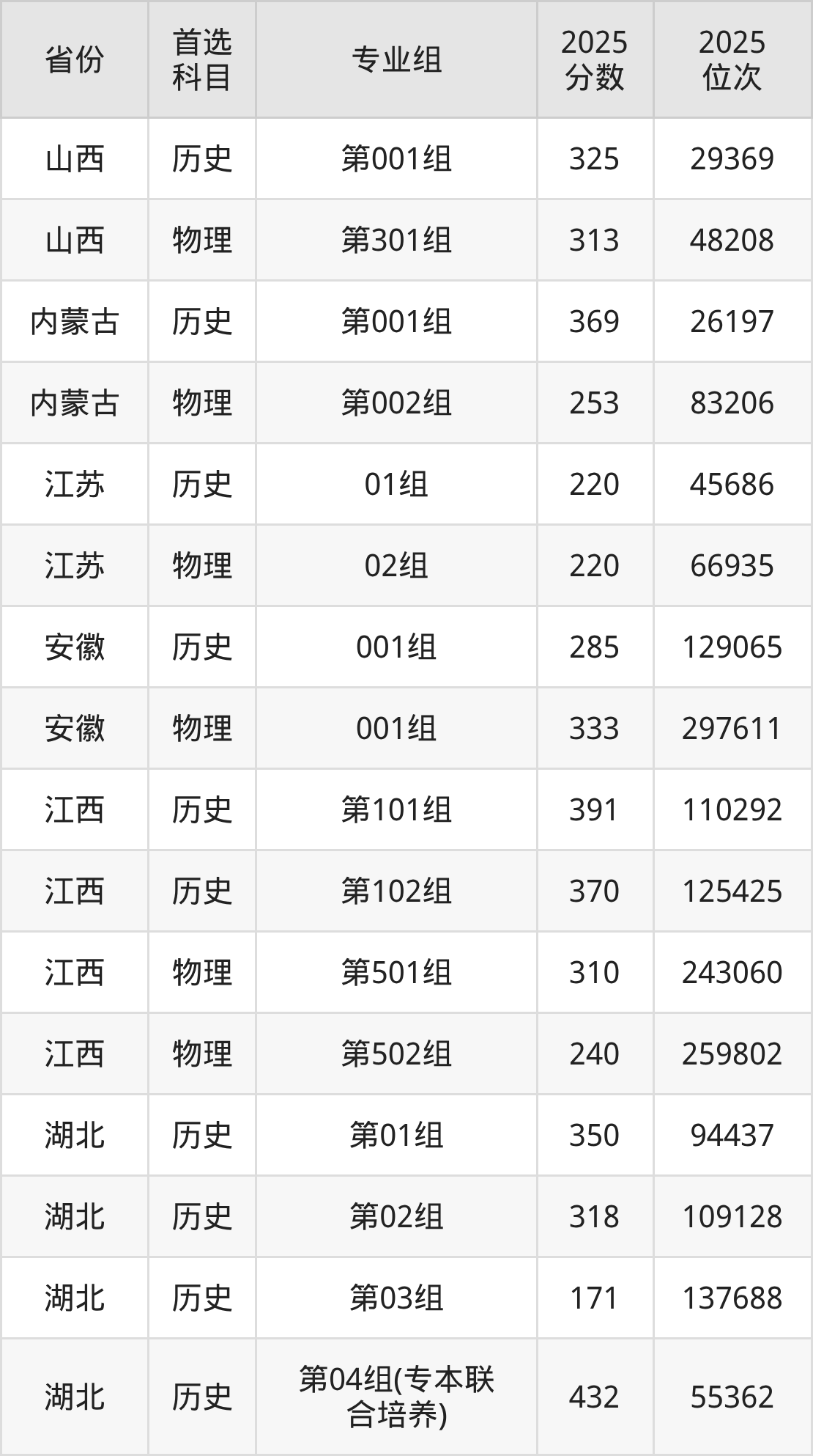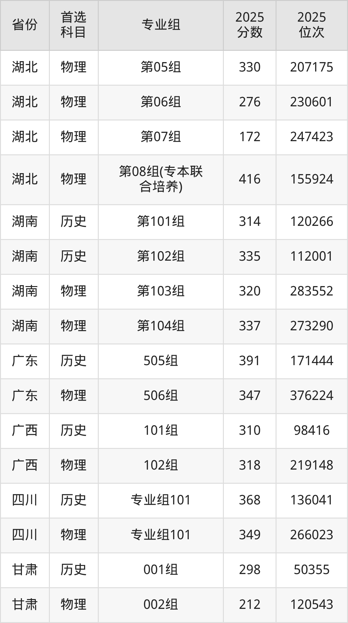 因为大部分地区目前只公布了院校(专业组)分数线,为了方便2026年考生参考,本文就整理出武汉商贸职业学院在全国各省不同科类的最低分: