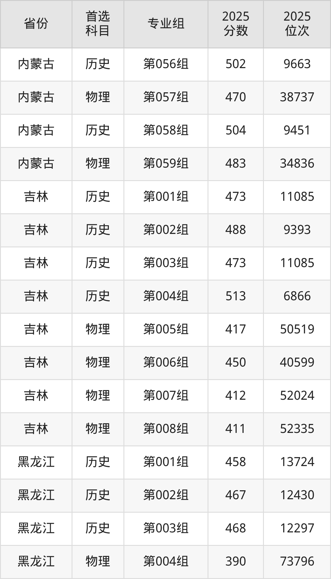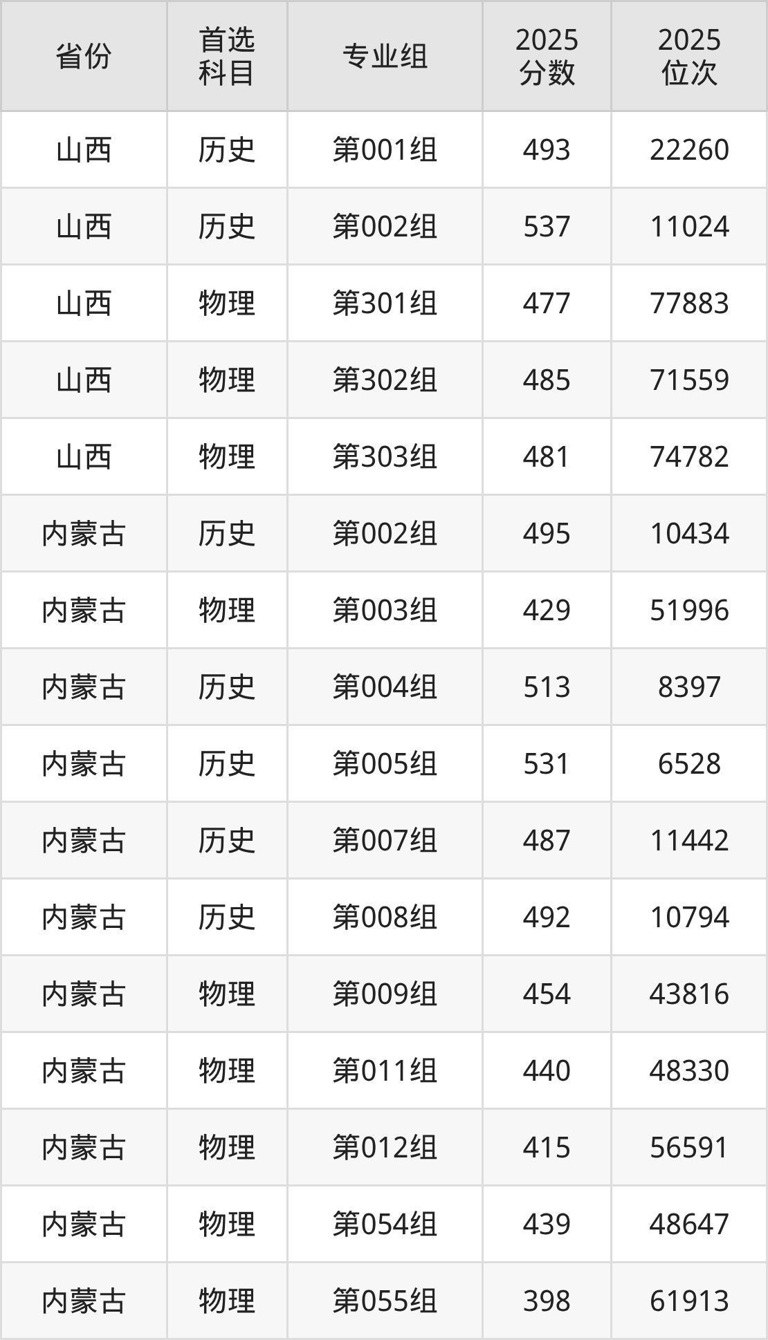 因为大部分地区目前只公布了院校(专业组)分数线,为了方便2026年考生参考,本文就整理出内蒙古科技大学包头师范学院在全国各省不同科类的最低分: