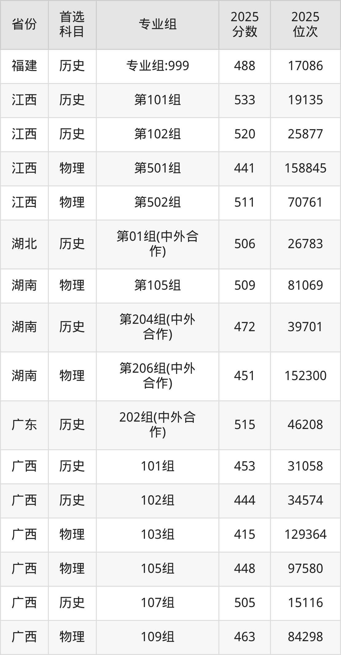因为大部分地区目前只公布了院校(专业组)分数线,为了方便2026年考生参考,本文就整理出沈阳师范大学在全国各省不同科类的最低分:
