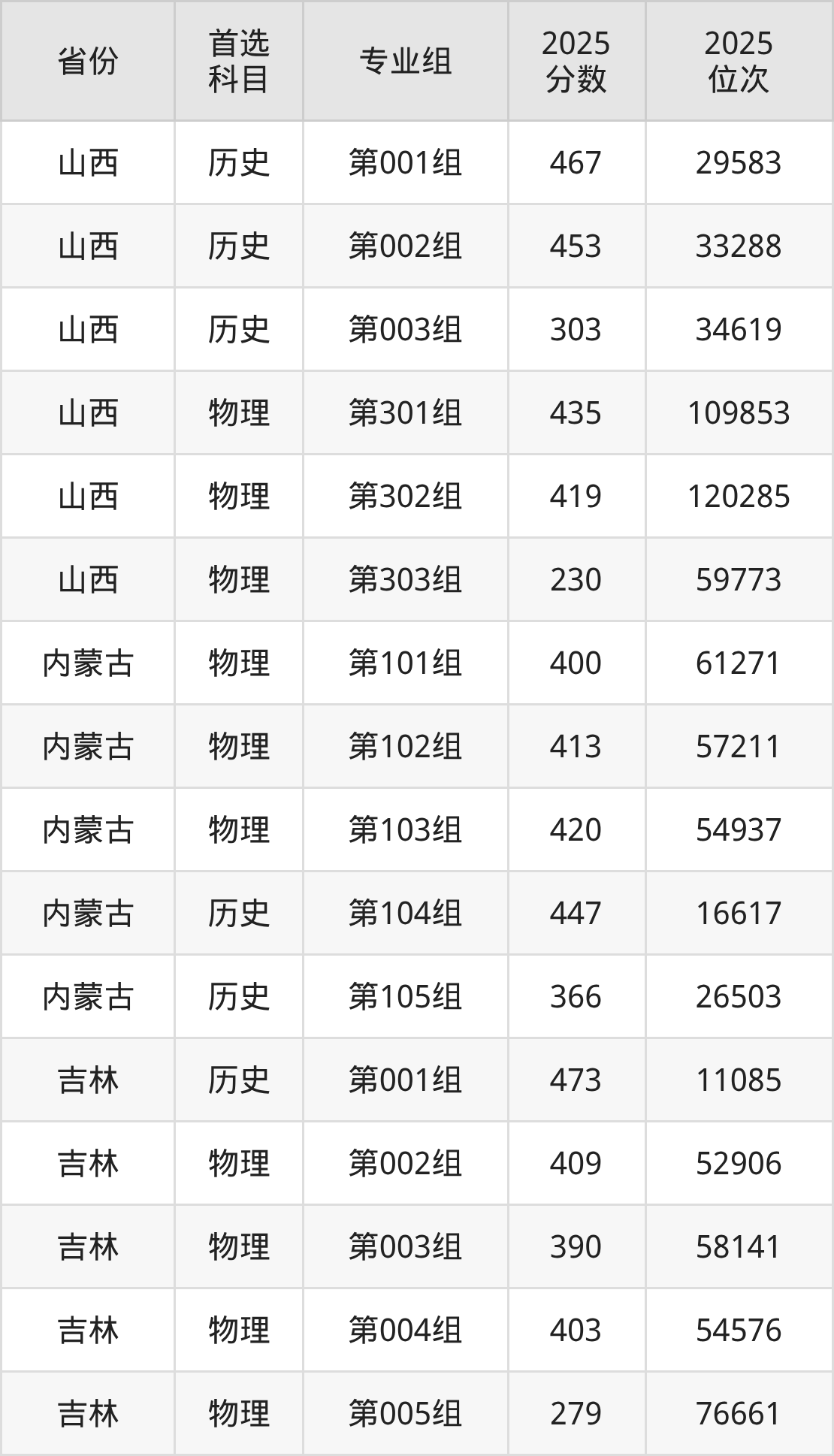 因为大部分地区目前只公布了院校(专业组)分数线,为了方便2026年考生参考,本文就整理出齐鲁理工学院在全国各省不同科类的最低分: