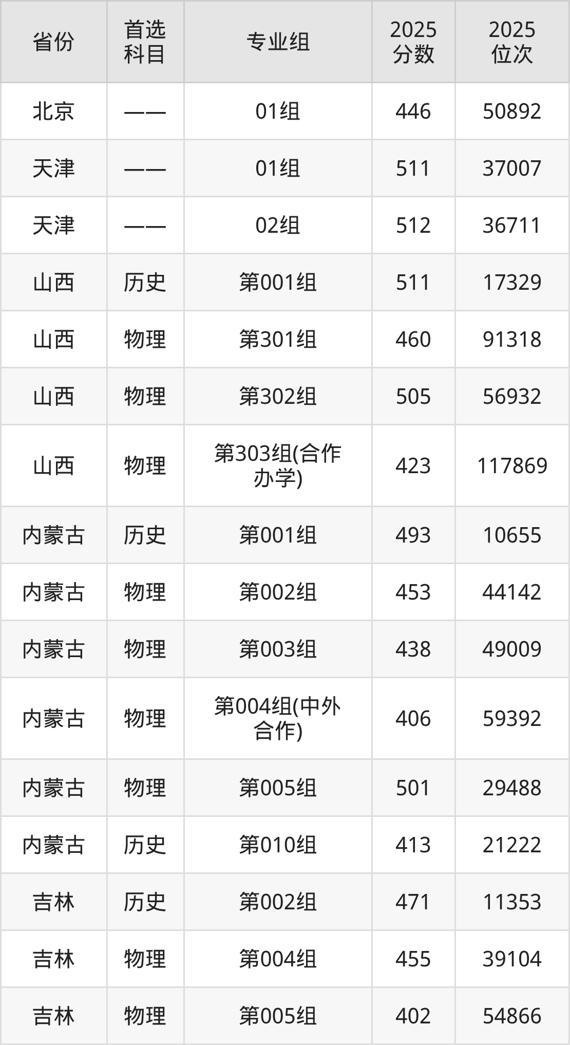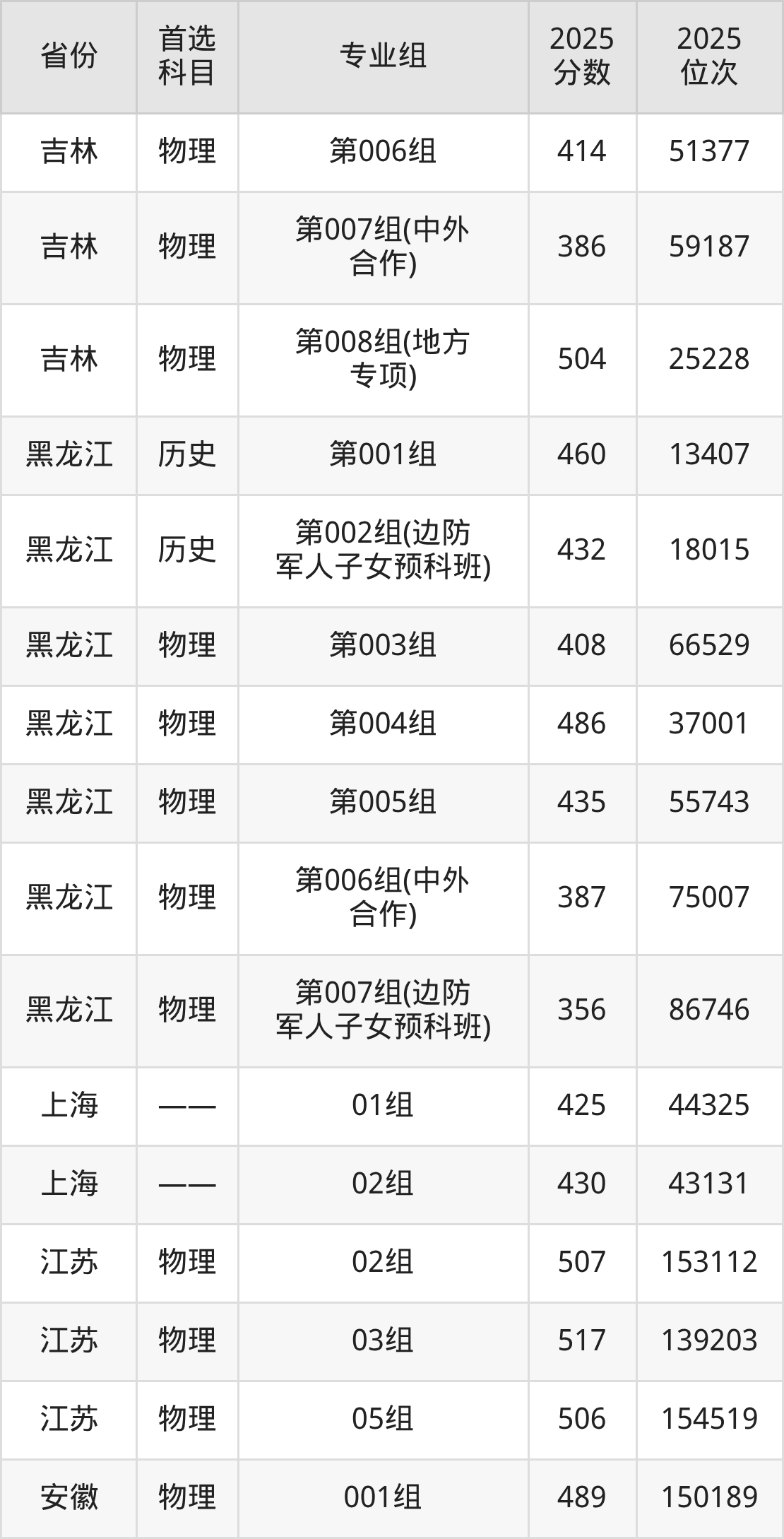 因为大部分地区目前只公布了院校(专业组)分数线,为了方便2026年考生参考,本文就整理出长春工程学院在全国各省不同科类的最低分: