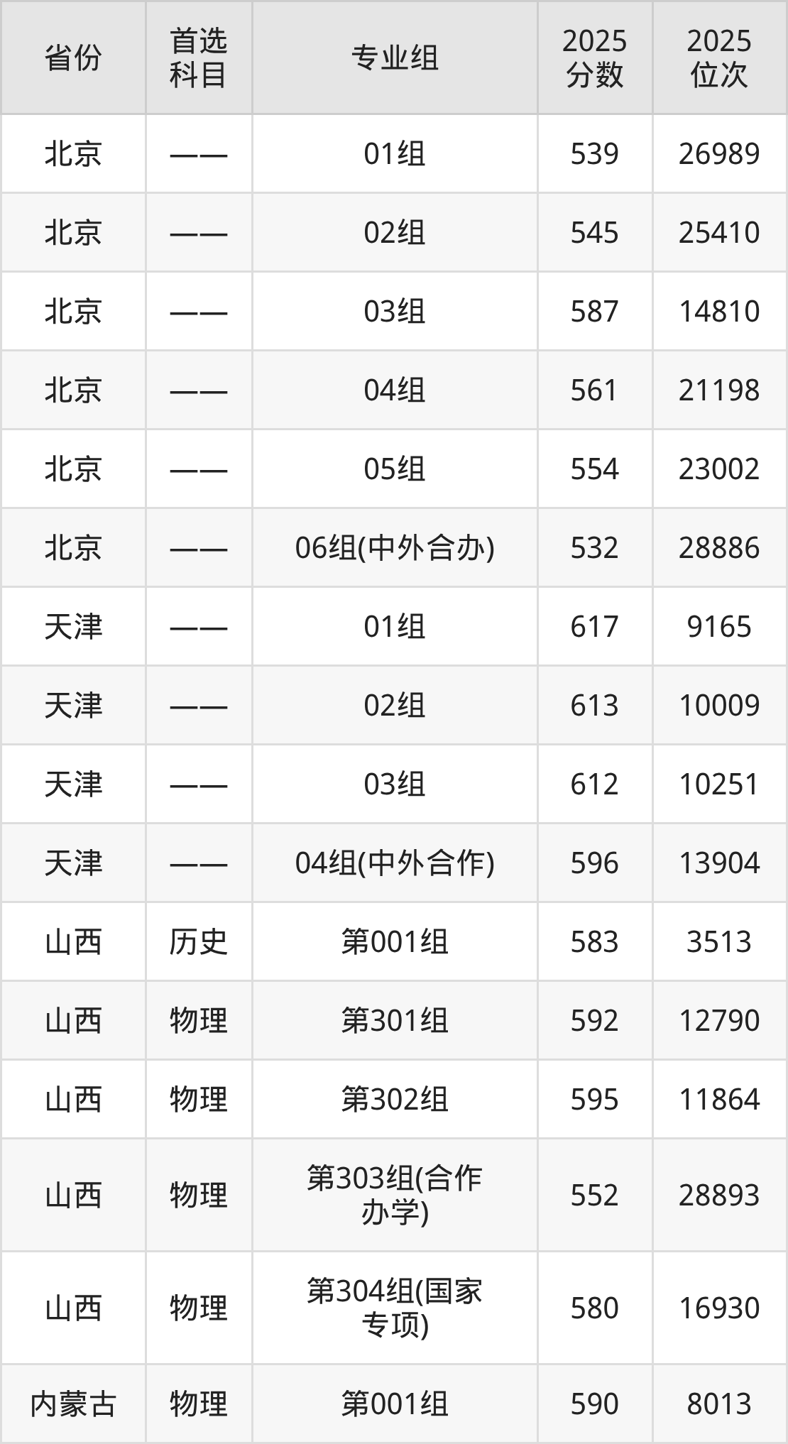 因为大部分地区目前只公布了院校(专业组)分数线,为了方便2026年考生参考,本文就整理出北京信息科技大学在全国各省不同科类的最低分: