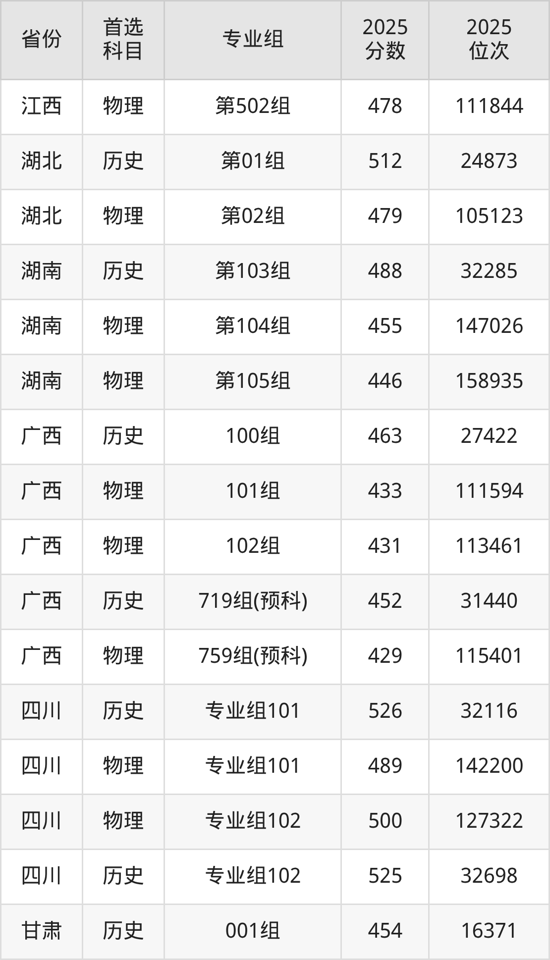 因为大部分地区目前只公布了院校(专业组)分数线,为了方便2026年考生参考,本文就整理出龙岩学院在全国各省不同科类的最低分: