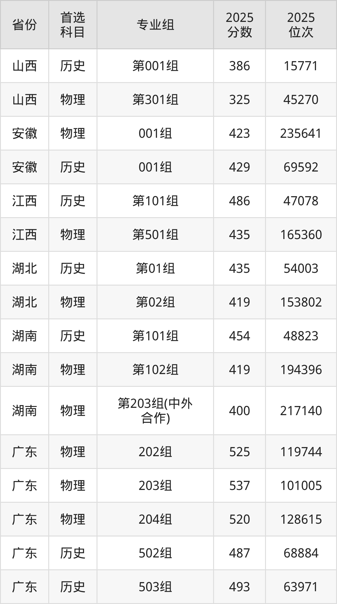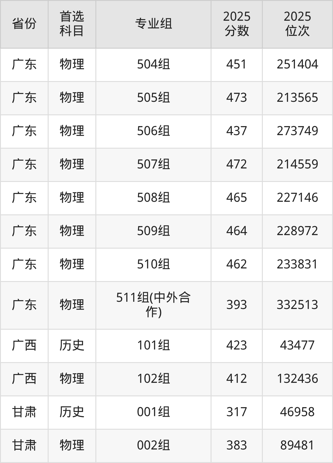 因为大部分地区目前只公布了院校(专业组)分数线,为了方便2026年考生参考,本文就整理出广州职业技术大学在全国各省不同科类的最低分: