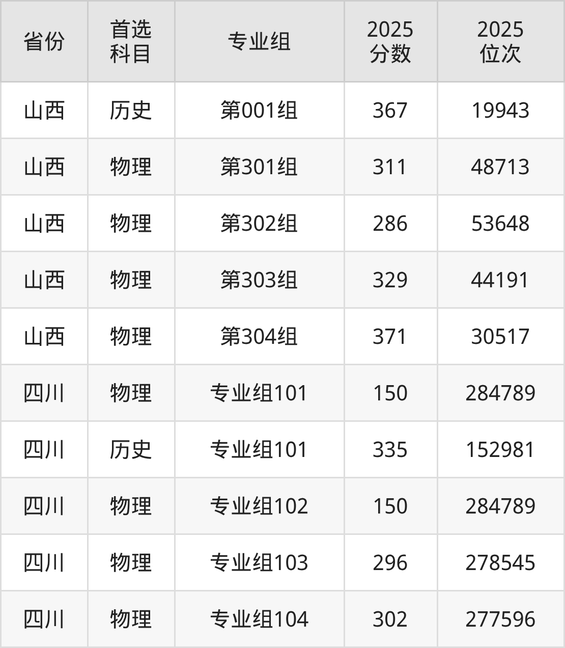 因为大部分地区目前只公布了院校(专业组)分数线,为了方便2026年考生参考,本文就整理出山东城市服务职业学院在全国各省不同科类的最低分: