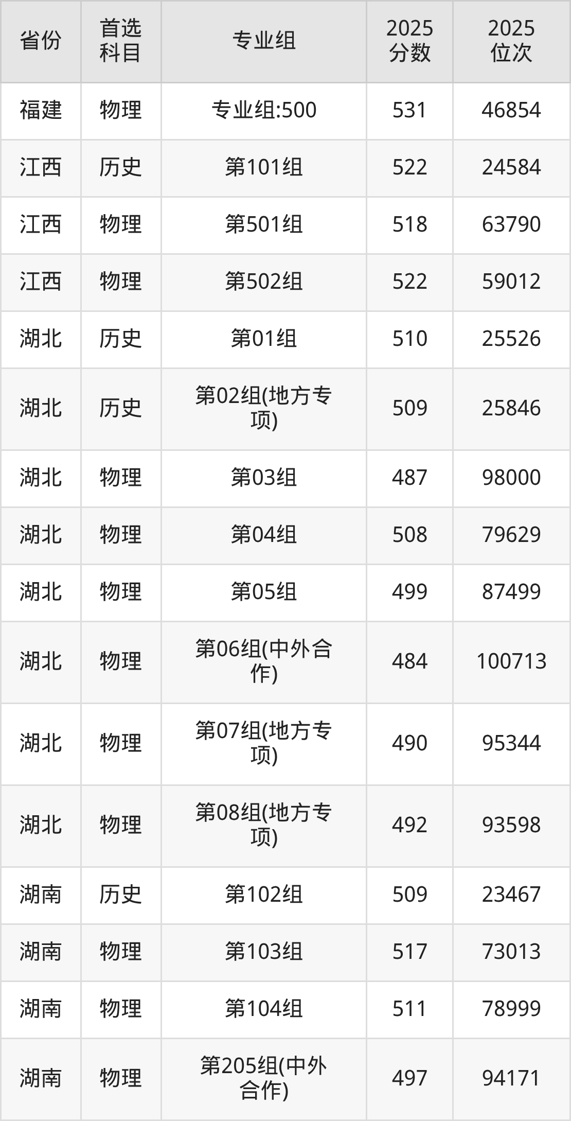 因为大部分地区目前只公布了院校(专业组)分数线,为了方便2026年考生参考,本文就整理出湖北汽车工业学院在全国各省不同科类的最低分: