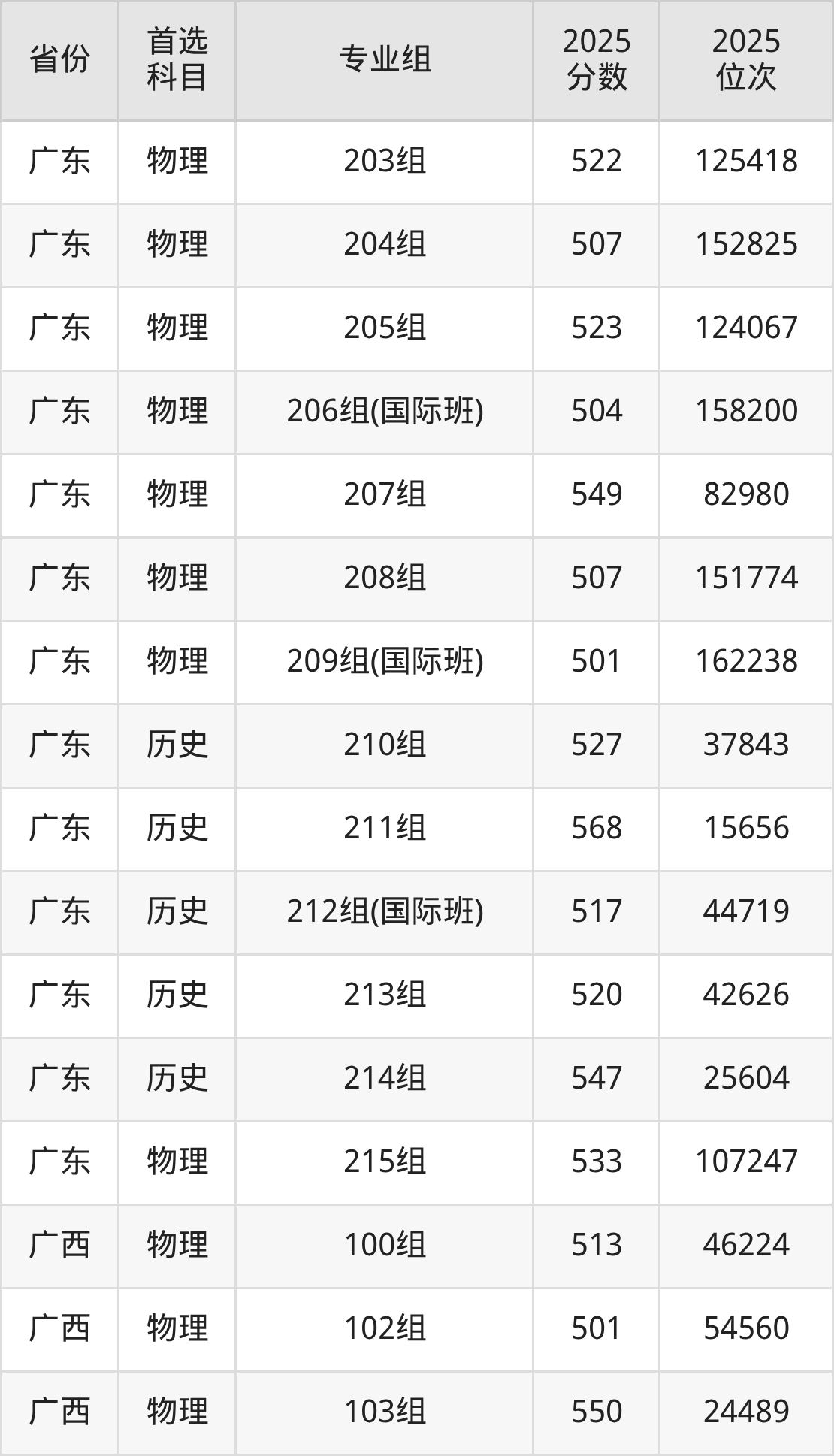 因为大部分地区目前只公布了院校(专业组)分数线,为了方便2026年考生参考,本文就整理出广东药科大学在全国各省不同科类的最低分: