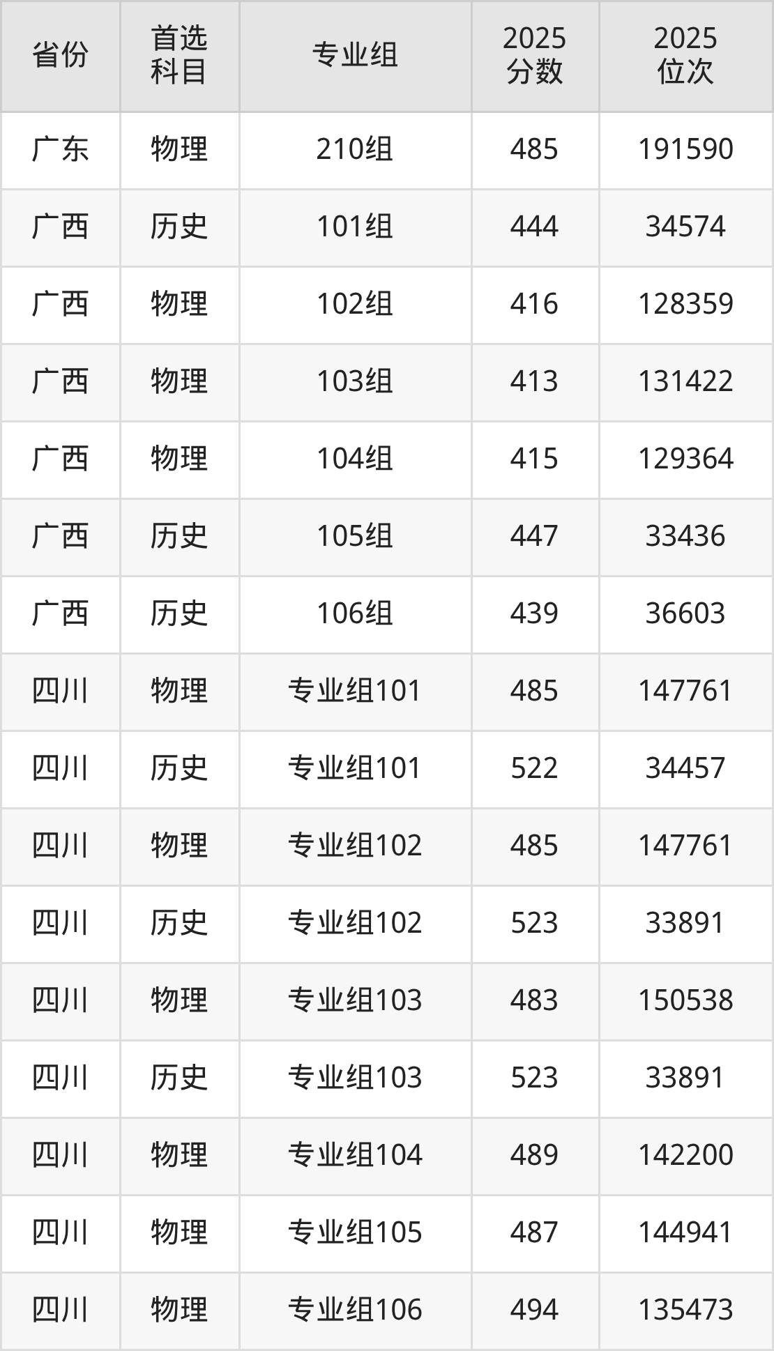 因为大部分地区目前只公布了院校(专业组)分数线,为了方便2026年考生参考,本文就整理出新疆科技学院在全国各省不同科类的最低分: