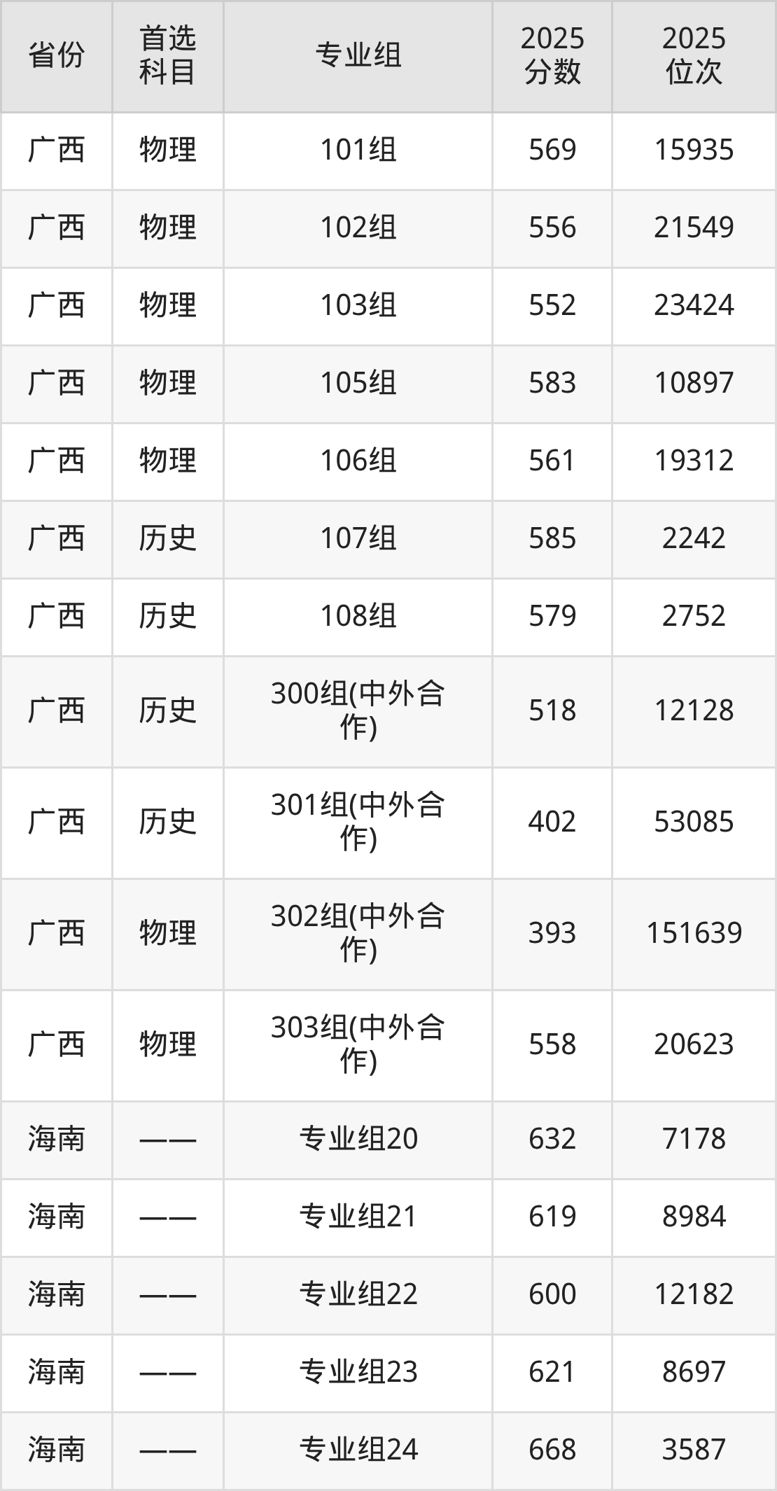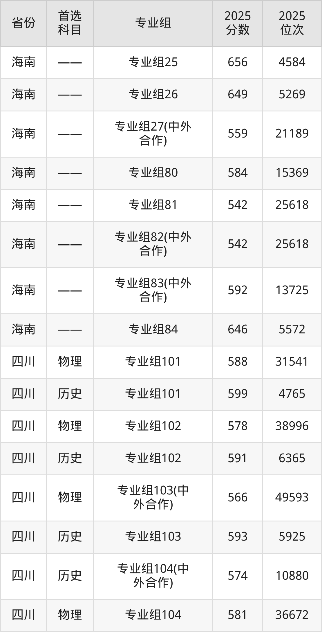 因为大部分地区目前只公布了院校(专业组)分数线,为了方便2026年考生参考,本文就整理出海南大学在全国各省不同科类的最低分: